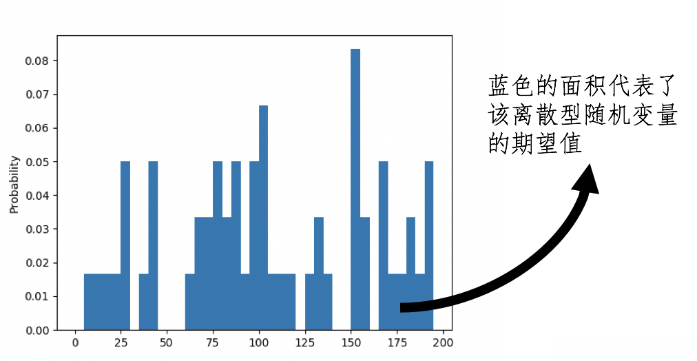 “离散随机变量的期望值,其实就是随机分布直方图的面积。”