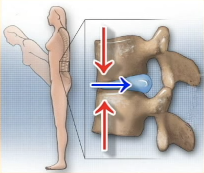 我们现在要做的就是,反过来。增加后侧的椎间盘压力。具体该怎么做呢?