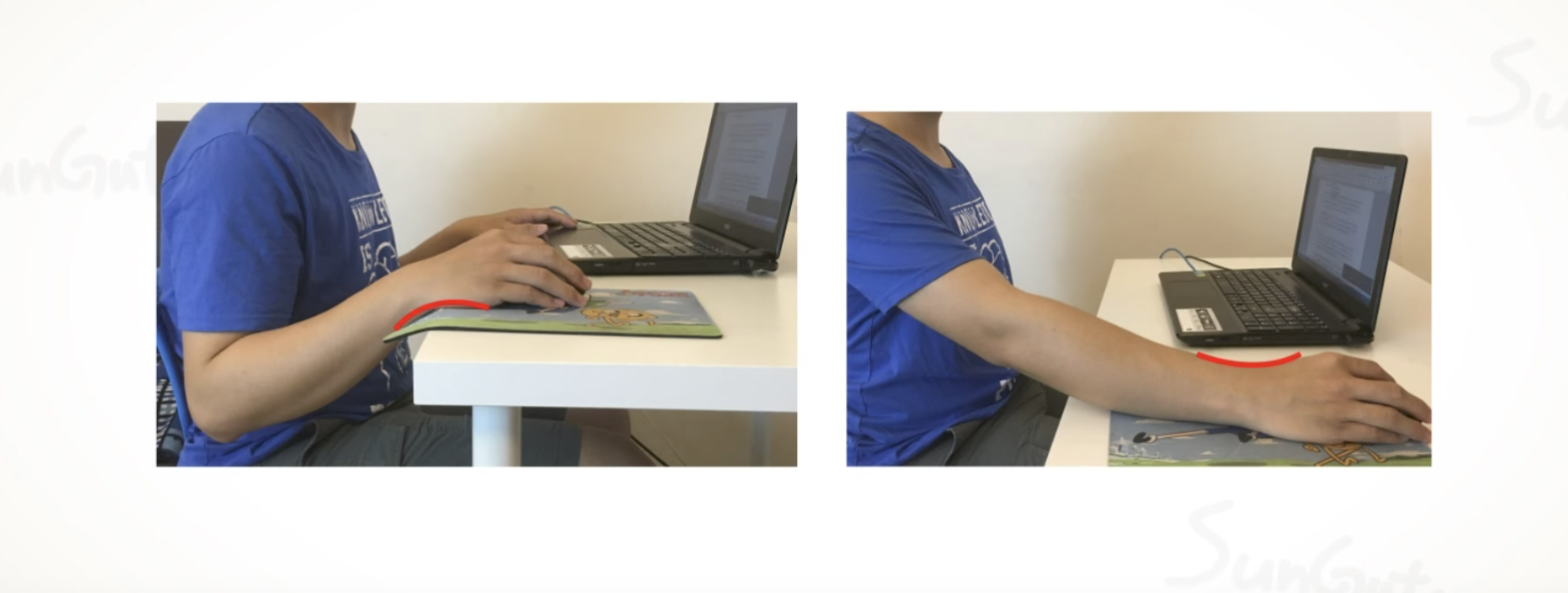 提到了鼠标垫,顺便说一句,不要用下图这种鼠标垫。表面上看,它支撑了手腕,似乎减轻了手臂的压力。实际上,我们使用鼠标的时候,应该是整个手臂协同动作。这种鼠标垫限制了手臂的活动,导致移动鼠标的压力全部被施加在了手腕部位,更容易导致腕隧道症候群的发生。