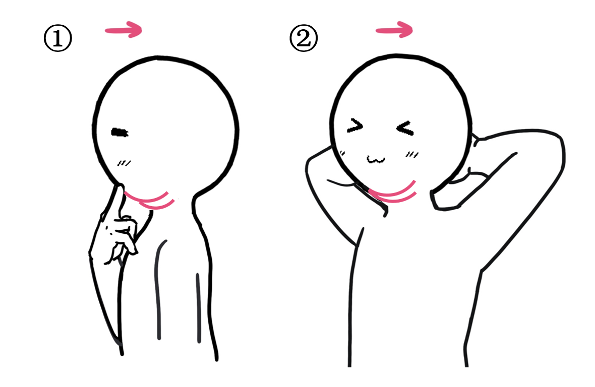 另一个原因就是低头太久,或是因为工作学习过于专注,而一直把下巴往前送。这通常是伴随着驼背一起发生的。所以感觉到酸痛的时候,除了挺直腰背,也要提醒自己,眼睛平视前方,视线略微低一些也不会有问题。同时,注意保持下巴微收。大部分人都会不自觉的抬下巴,去拍证件照的时候经常听到摄影师提醒顾客收一下下巴。实际上,拍照的时候保持这个姿势也会比较好看:)