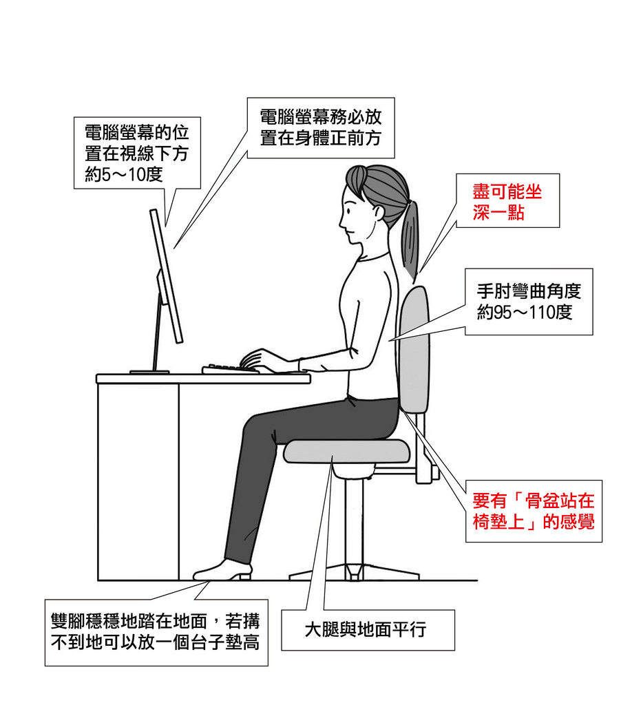 应该能注意到,这个通用的坐姿三原则把手部除开了,也就意味着,整个身躯的形状,其实靠你自己和椅子就基本决定好了。所以我们先讲讲椅子: