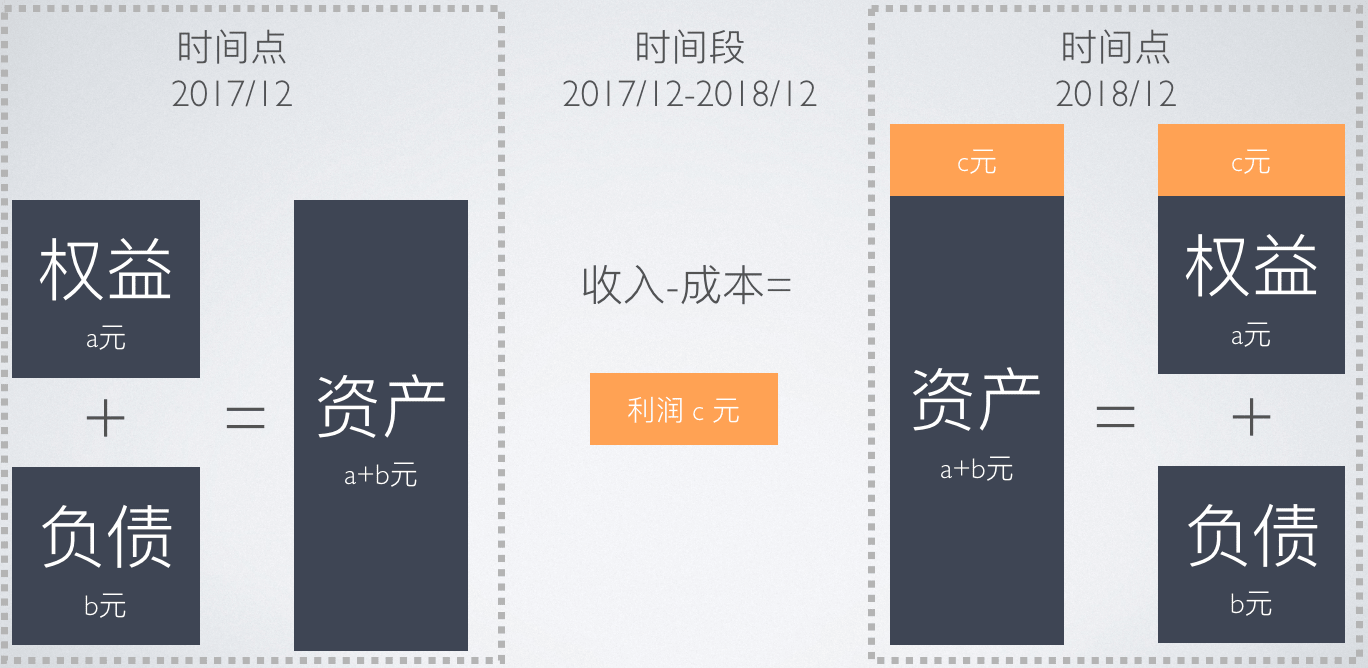 这时候的资产负债表,反映的其实是这个时点下,这个企业是如何整装待发,准备利用盘活这些资产,去赚钱的。而反映赚钱的这个过程,则是利润表。
