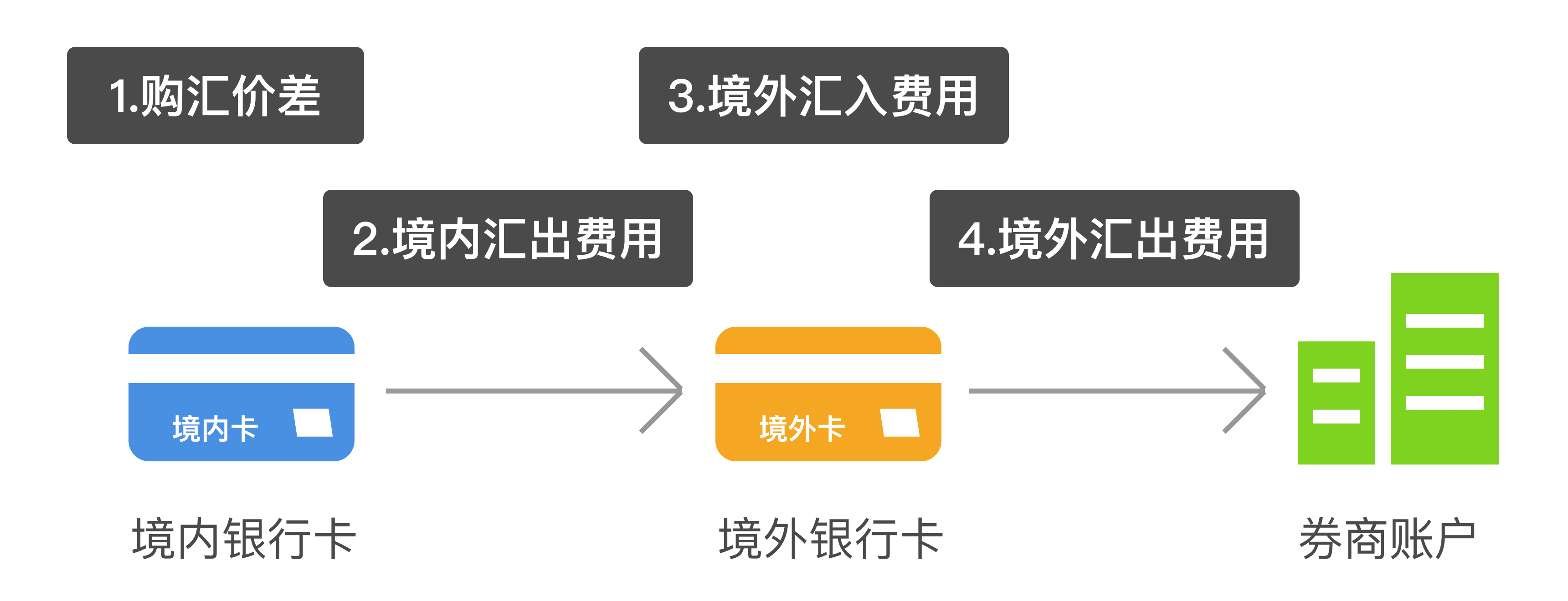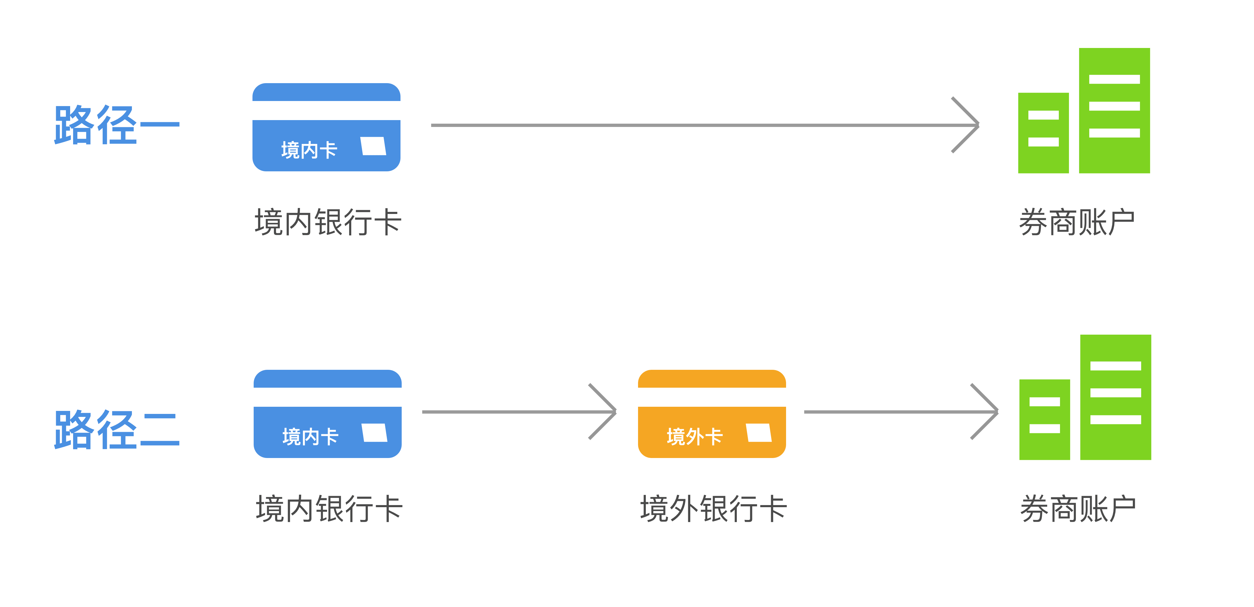 大陆卡 → 境外同名银行卡 → 券商境外托管银行账户