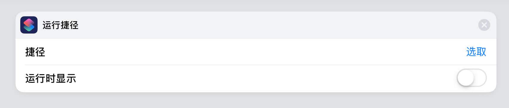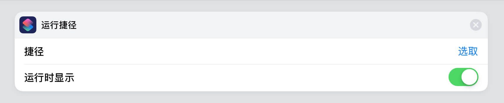 在演示视频里,我们会发现,当我们选择「获取图标」后,这个捷径又被打开了一次。其实这个过程在这里是没有必要的,我们也可以设定不让它打开。只要在「运行捷径」这个操作中,关掉「运行时显示」的开关即可。