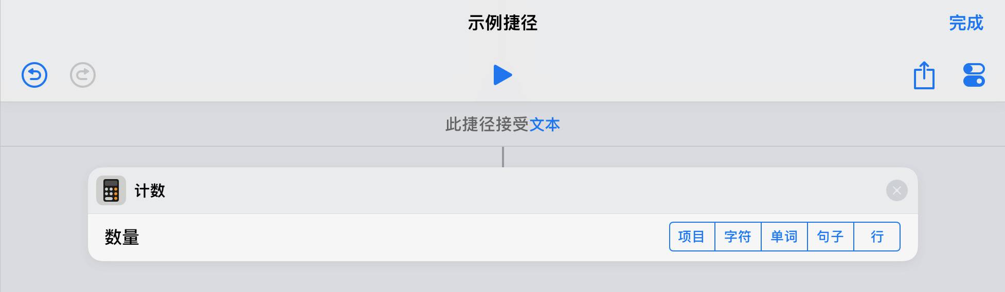 而在这个例子中,我们主要是要把「项目的数量」和「文字(字符)的数量」进行区分。一段文字,不管它有多长,有多少字,我们只要一次性选中了它,那它们都存在于 1 项结果之中。也就是说,选中的字数再多,运行捷径后,还是 1 项结果。