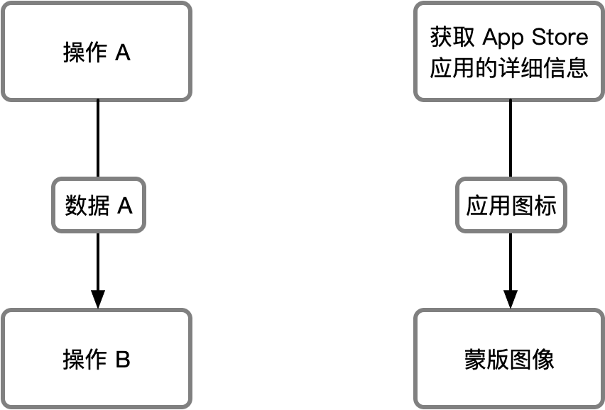 当一个操作 A,向下一个操作 B 传递数据 C 的时候,我们就可以说操作 A 向操作 B 输入了数据 C。比如说我们第三周制作 App Store 应用相关的捷径,我们用「获取 App Store 应用的详细信息」这个操作来获取应用的图标,然后把这个图标传递给了下一个操作「蒙版图像」。那么这时候,我们就可以说,「获取 App Store 应用的详细信息」向「蒙版图像」输入了应用的图标。