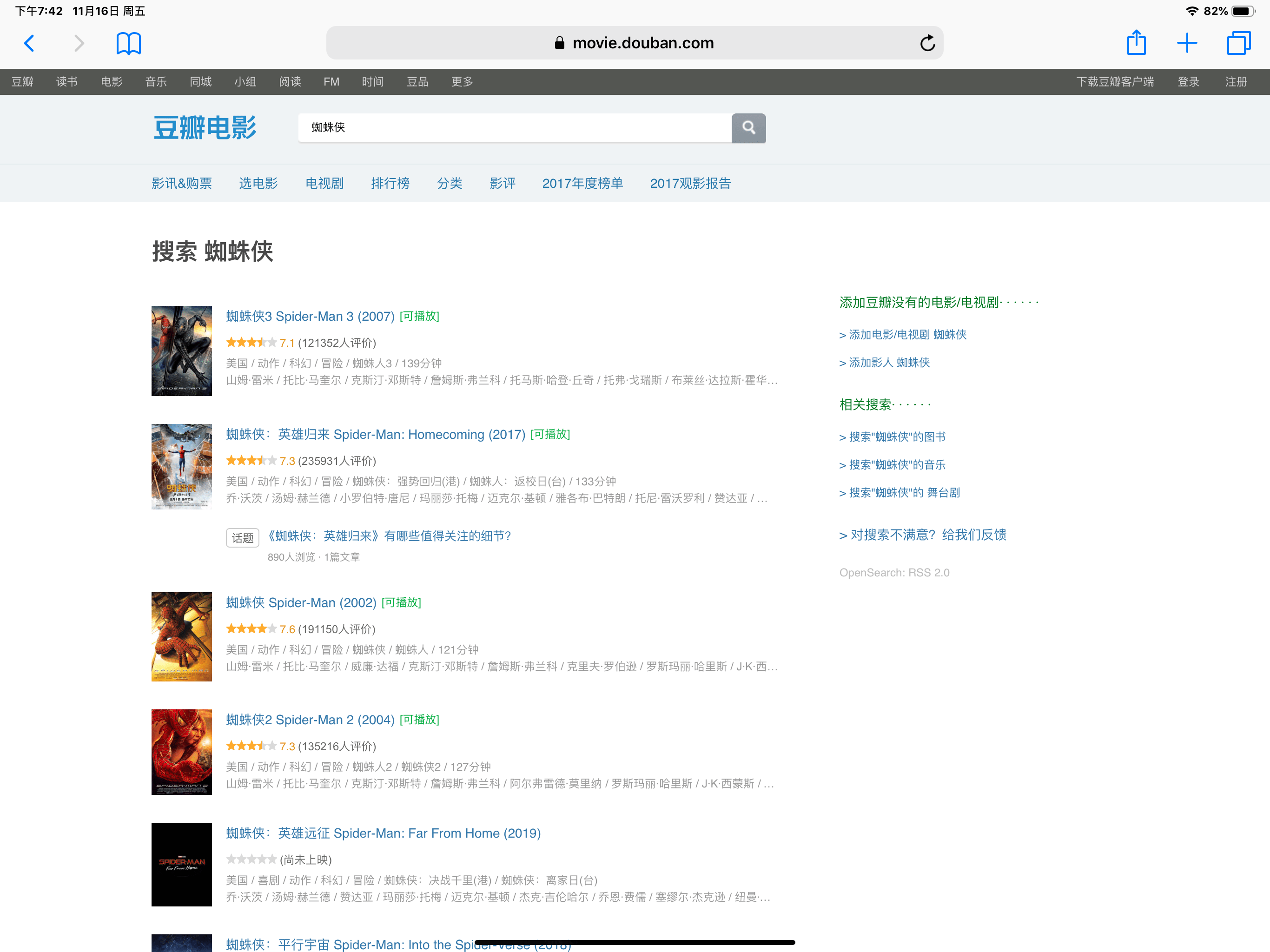 为了便于理解,我们把这个例子再说得细一点。假设你最近才成为漫威粉,对《复仇者联盟 3》里的蜘蛛侠很有好感,看他被灭霸响指了觉得很难过,想看看这个蜘蛛侠的人物电影。在搜索「蜘蛛侠」,搜索结果出来之后,你其实就是在逐个地检查搜索结果,去根据每一条搜索结果提示的东西——标题、主演、海报等等——去找你熟悉的小蜘蛛的形象。