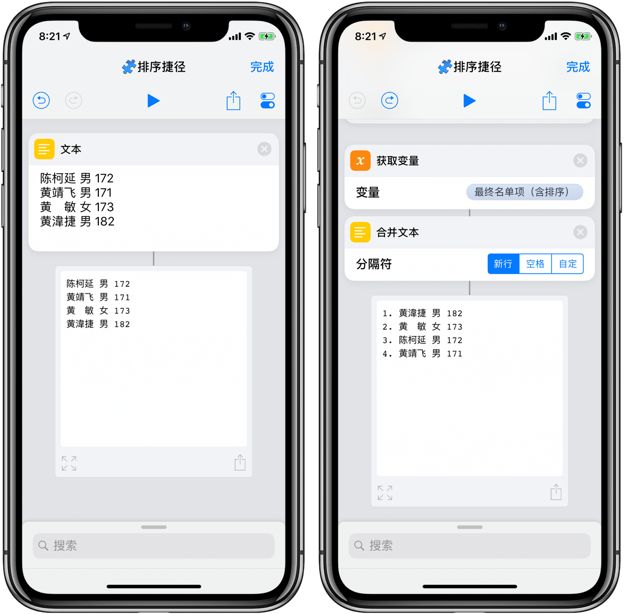 捷径里有一个非常「自动化」的制作列表的办法——用文本制作列表。在我们这个需求里,它的做法是: