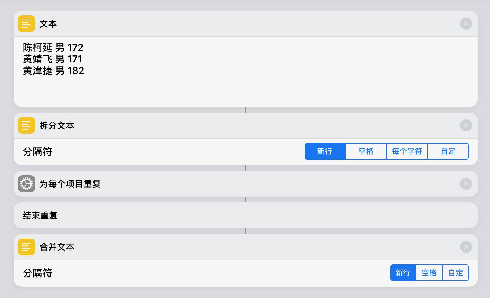 完整的步骤就是「在重复中添加 1 个『文本』操作」这张图片,非常短。