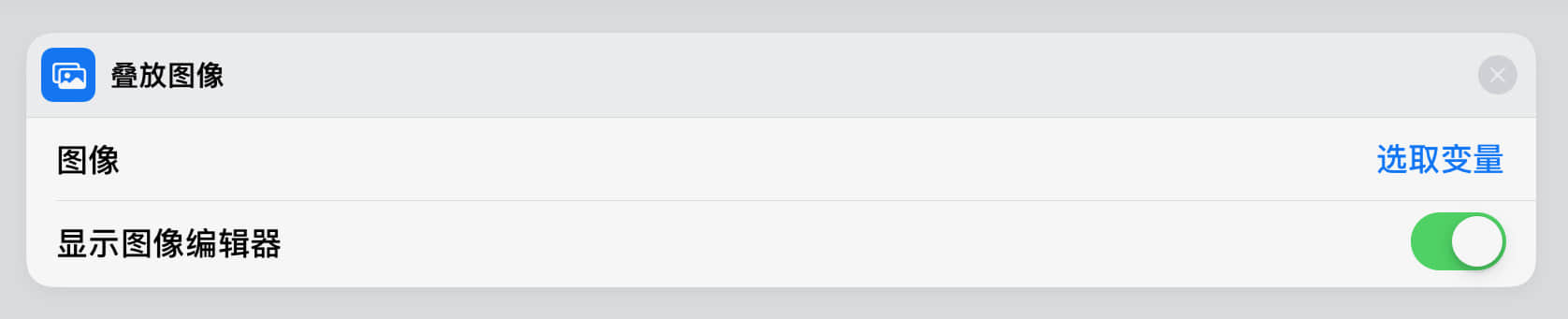 但要想自动化批量给一堆图片打水印,那就还是需要指定好水印的大小和位置。捷径提供了这个选项,我们把 「显示图像编辑器」后的开关给关上: