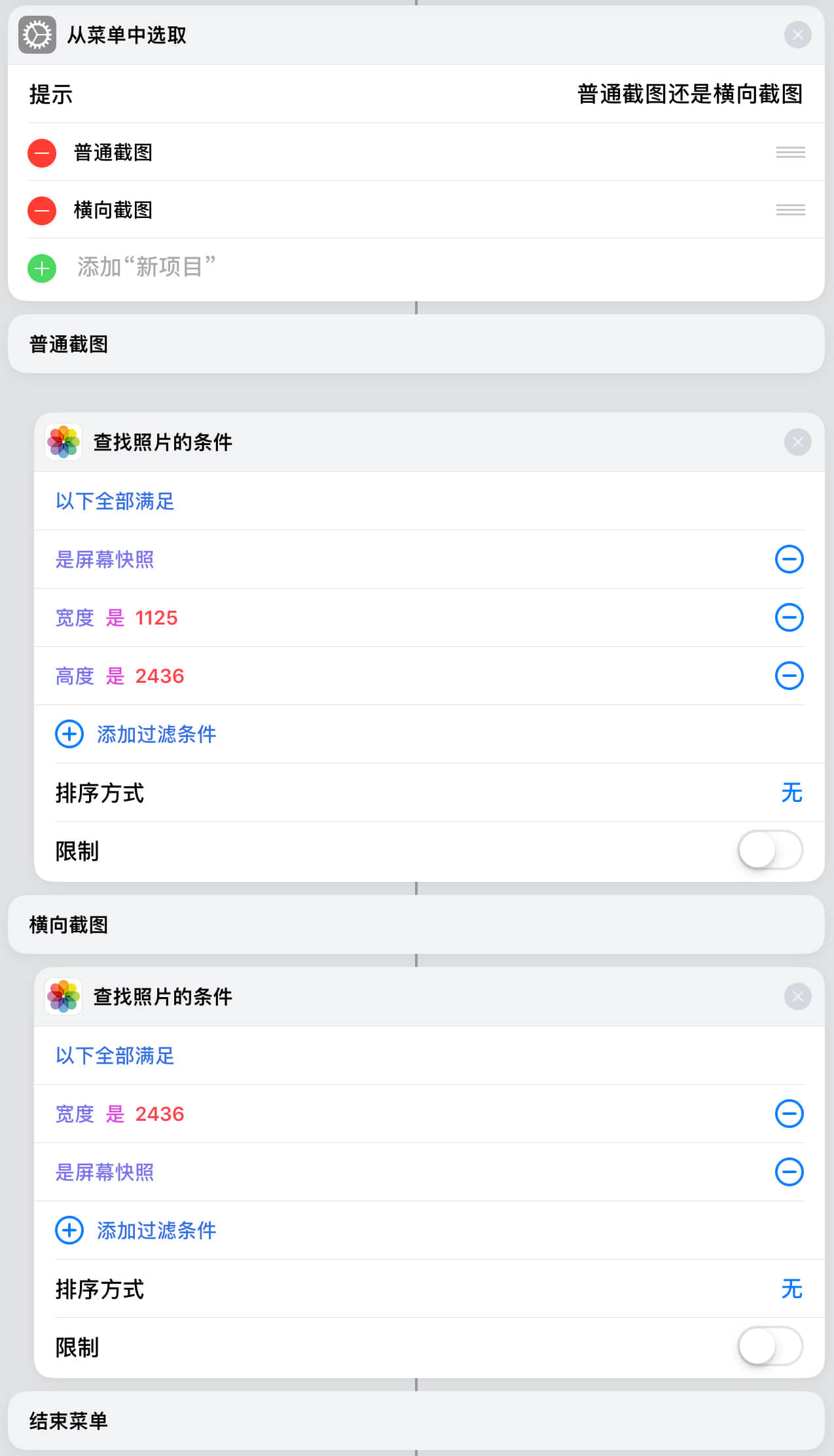 所以我们在这一节,将带着大家解决前三个问题,以 iPhone X(XS)的横竖截图套壳为例,来说明这类捷径的操作逻辑。