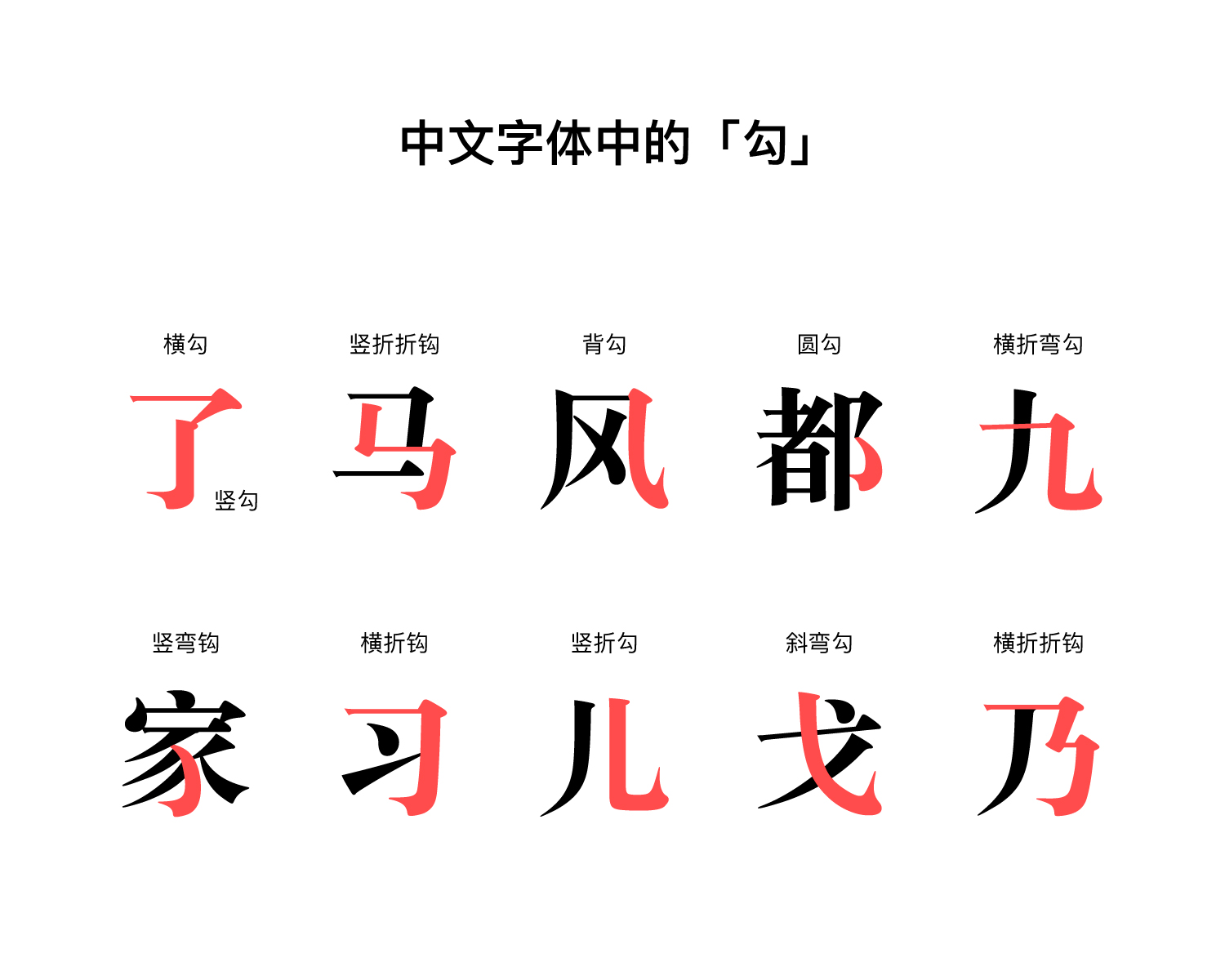 上一章,我们讲了如何辨识英文字体,为了不让篇幅过长,我们在这一章接着讲「如何辨识中文字体」。在掌握了英文字体的辨识技巧之后,掌握中文字体辨识技巧会简单许多,但两者在发展和设计方式上仍有区别。英文的每句话由单词组成,单词由二十六种字母组成;而中文则是方块字,每个字由笔画组成,光是「勾」这一种笔画就有多达十一种勾。