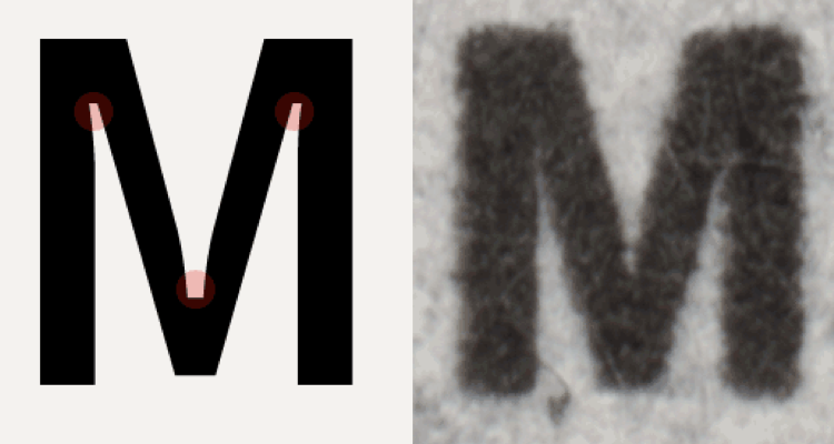 为了解决笔画交汇处的墨水扩散问题,设计师 Matthew Carter 在笔画交汇的地方挖空一些,这样墨水扩散后就能自动填满,视觉上才算正常。Bell Centennial 与喇叭口的设计都是为了媒介而做的优化,同样也因媒介的迭代而慢慢淘汰。
