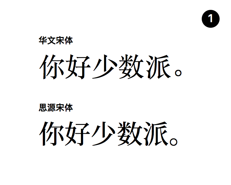 细节观察:同是衬线字体,思源宋体的衬线更加尖锐,华文宋体的衬线更圆润。思源宋体的「你」字右半边的竖勾和上边的横折几乎接触了,小字体的时候可能会有粘在一起的感觉。