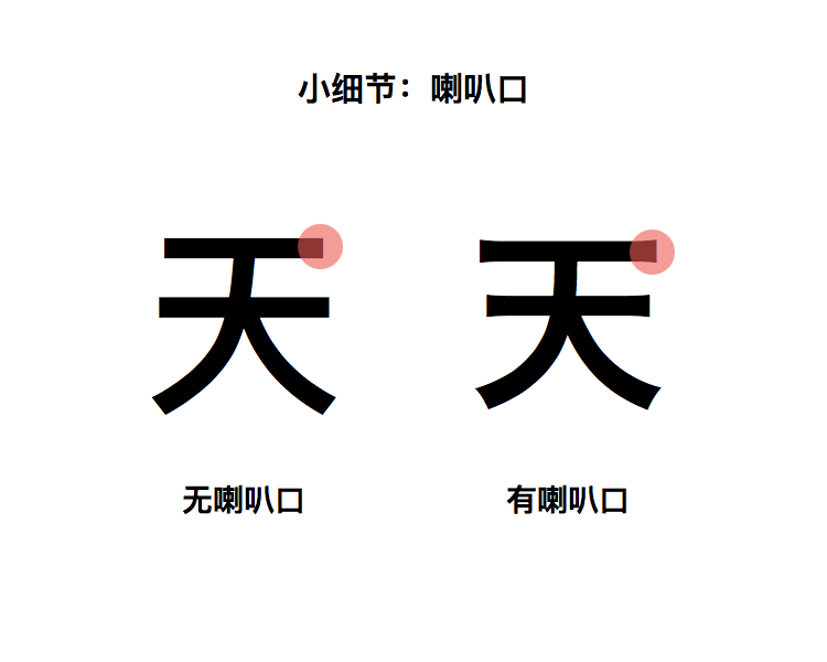 喇叭口是笔画末端变宽的部分,有些字体有喇叭口,有些则没有。