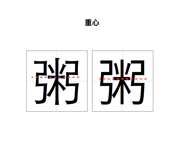 字的视觉重心。一套字体的重心几乎保持一致,不同字体的重心略有不同。