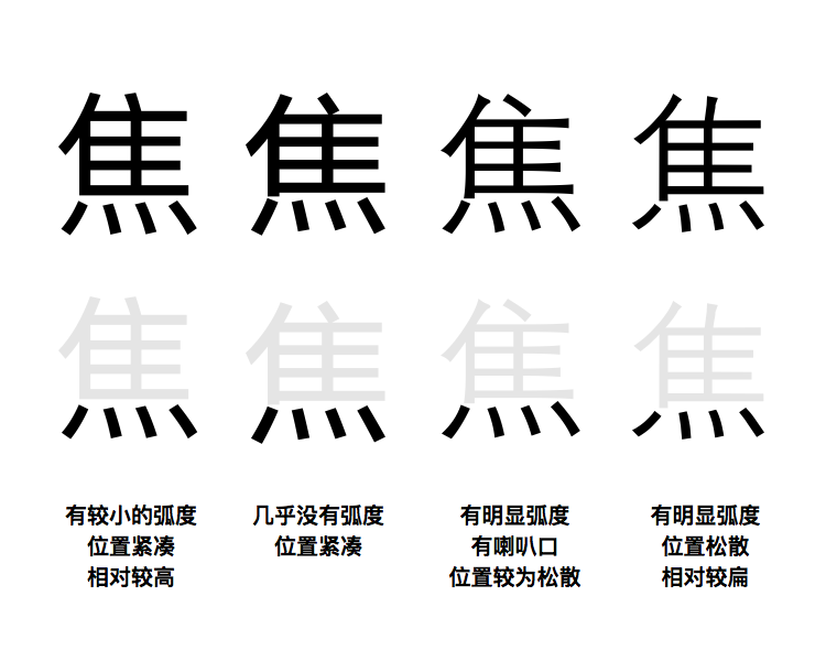 我们对待中文字体的时候,需要洞察的辨识特征稍有不同,但仍有许多共通之处。