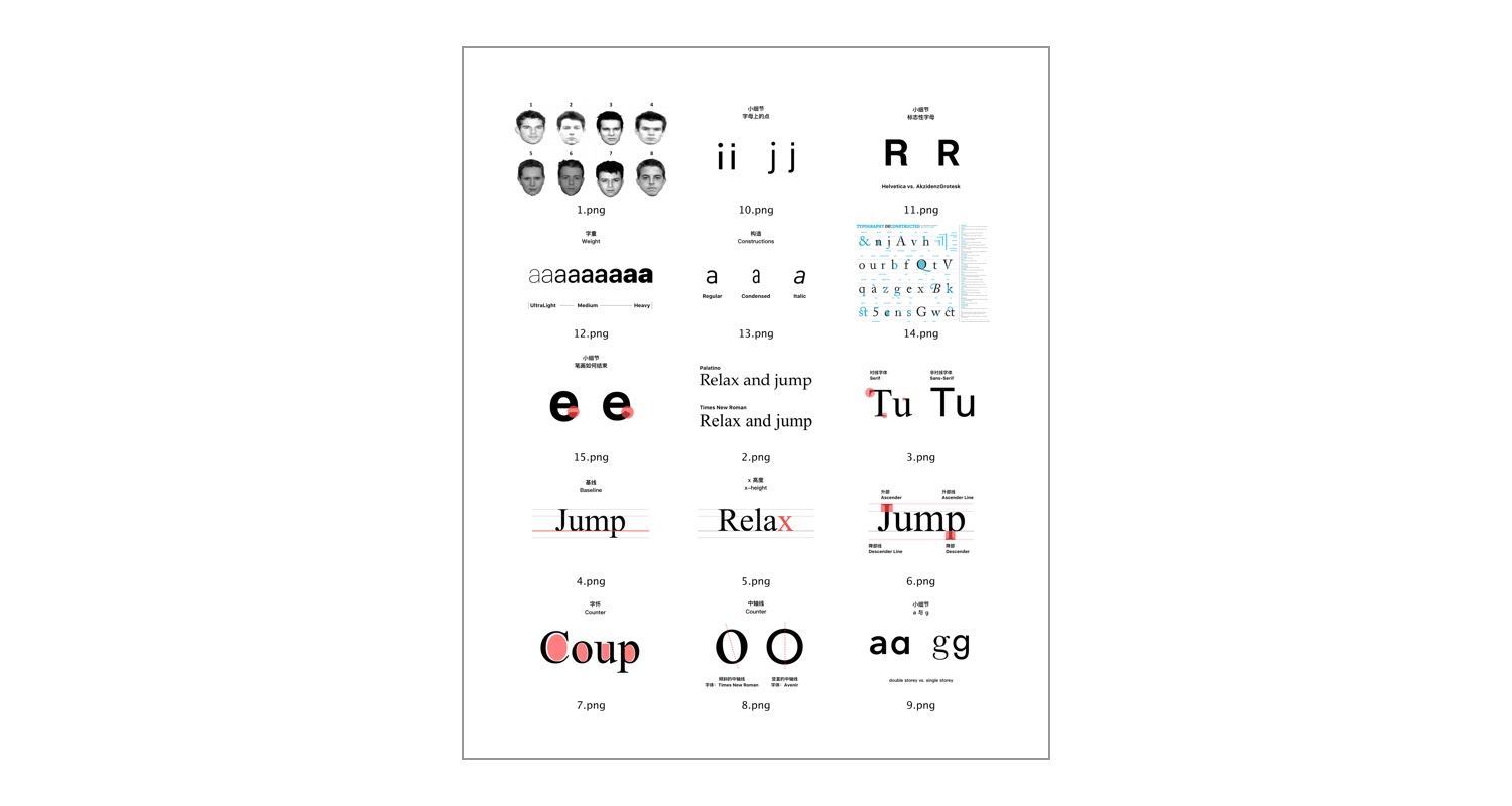 联系表是指将图片以缩略图的方式排列在一张图片中的形式。这种表格的好处是他人可以对一组图片的样子一目了然,也非常方便进行对比,适合图片较多或者多个图片相似度较大的情况。比如一个设计制作了多个尺寸,或者做了好几个版本,使用联系表展示给他人是聪明的选择。