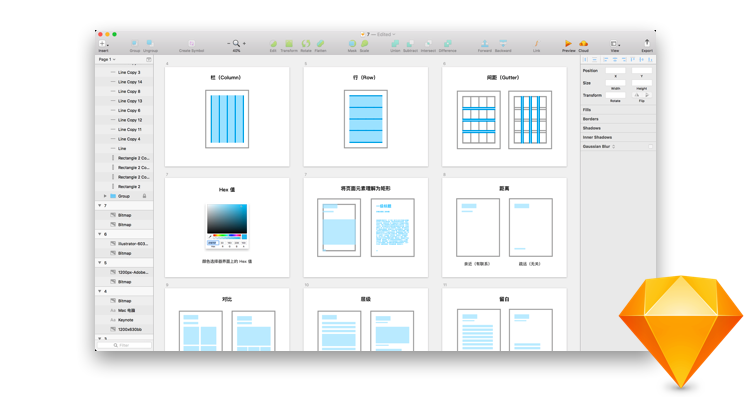 目前主流设计风格偏向简洁与扁平化,使用交互设计软件进行平面设计也并非不可。而且这些软件运行起来要比 Photoshop 以及 InDesign 流畅不少。比如这套教程的图片就是在 Sketch 里面制作的:因为 Sketch 要比庞大的 Photoshop 性能好很多,制作图片的基本功能 Sketch 完全可以满足,Sketch 反而用起来比 Photoshop 甚至 InDesign 舒服。