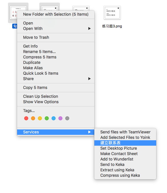 在保存该服务之后,你便可以在右键菜单中的「服务」子菜单中找到这个服务,选中想要生成联系表的文件,点击这个服务即可。