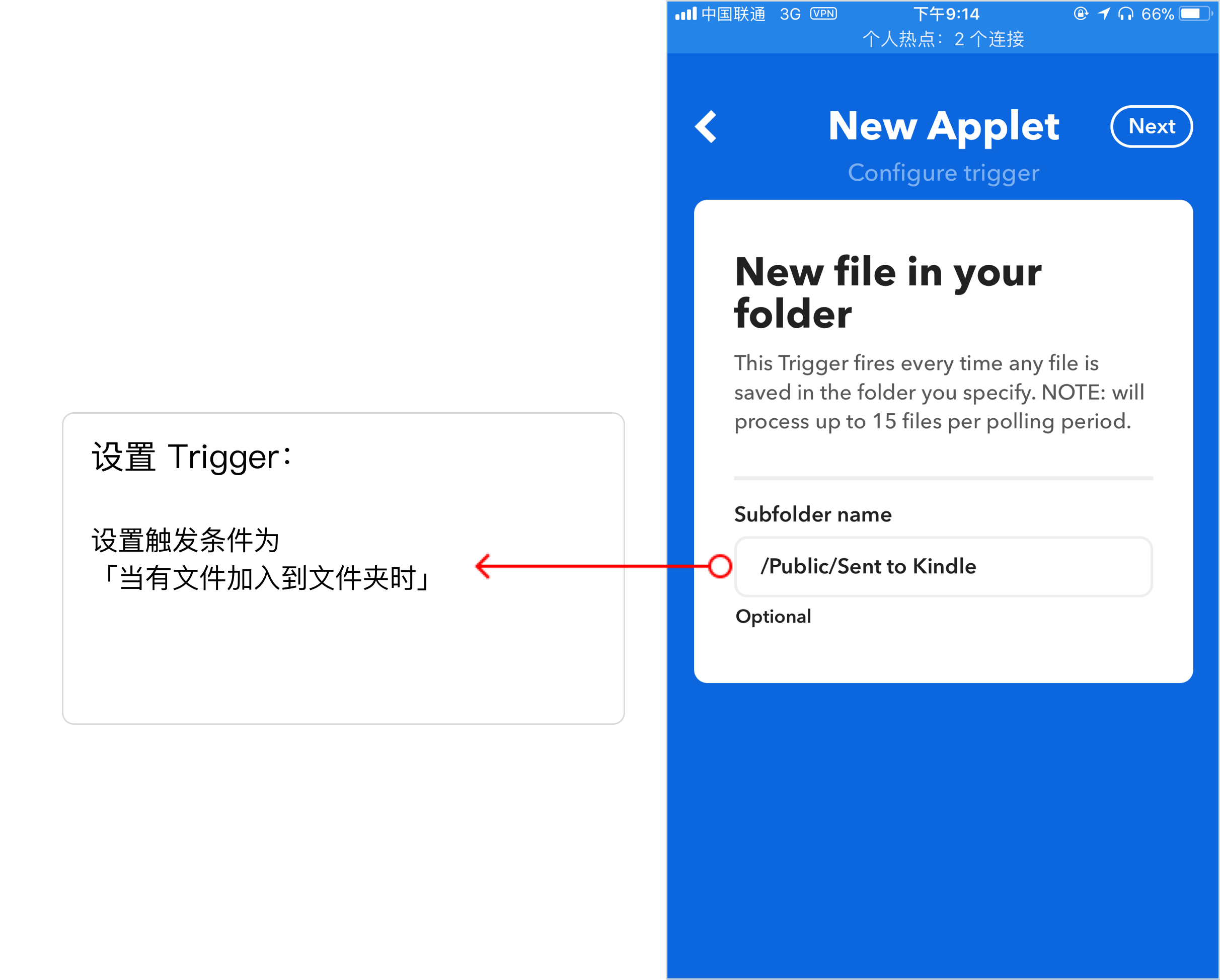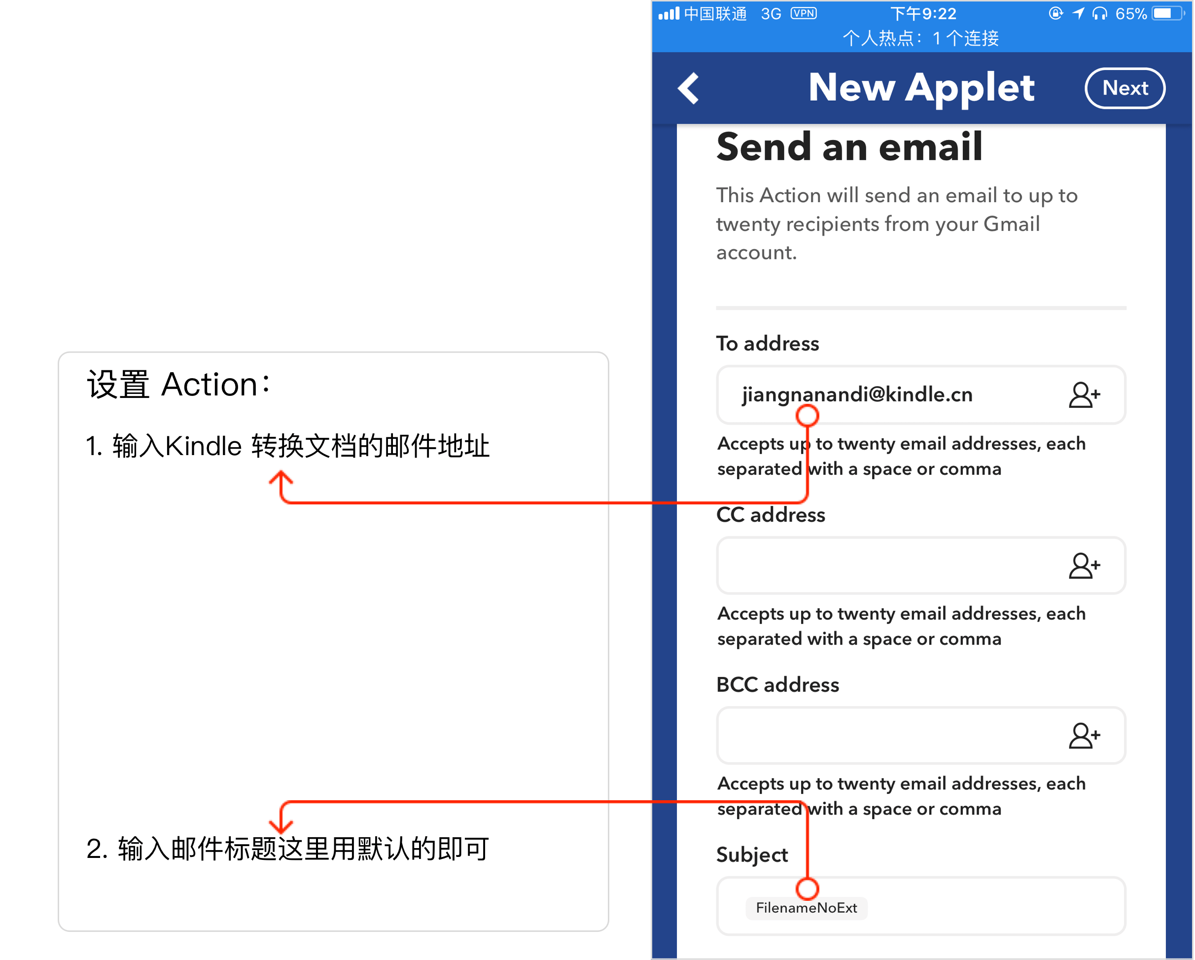 如果我们有一本书向发送到 Kindle,我们需要打开邮箱客户端,输入 Amazon 分配的邮箱地址,将书籍作为附件发送之后,才可以在 Kindle 中收到并进行阅读。现在利用 IFTTT,我们可以通过 Dropbox,将需要转换的书籍存放到 Dropbox 指定的位置,IFTTT 自动将书籍发送到 Amazon 进行转码并推送。