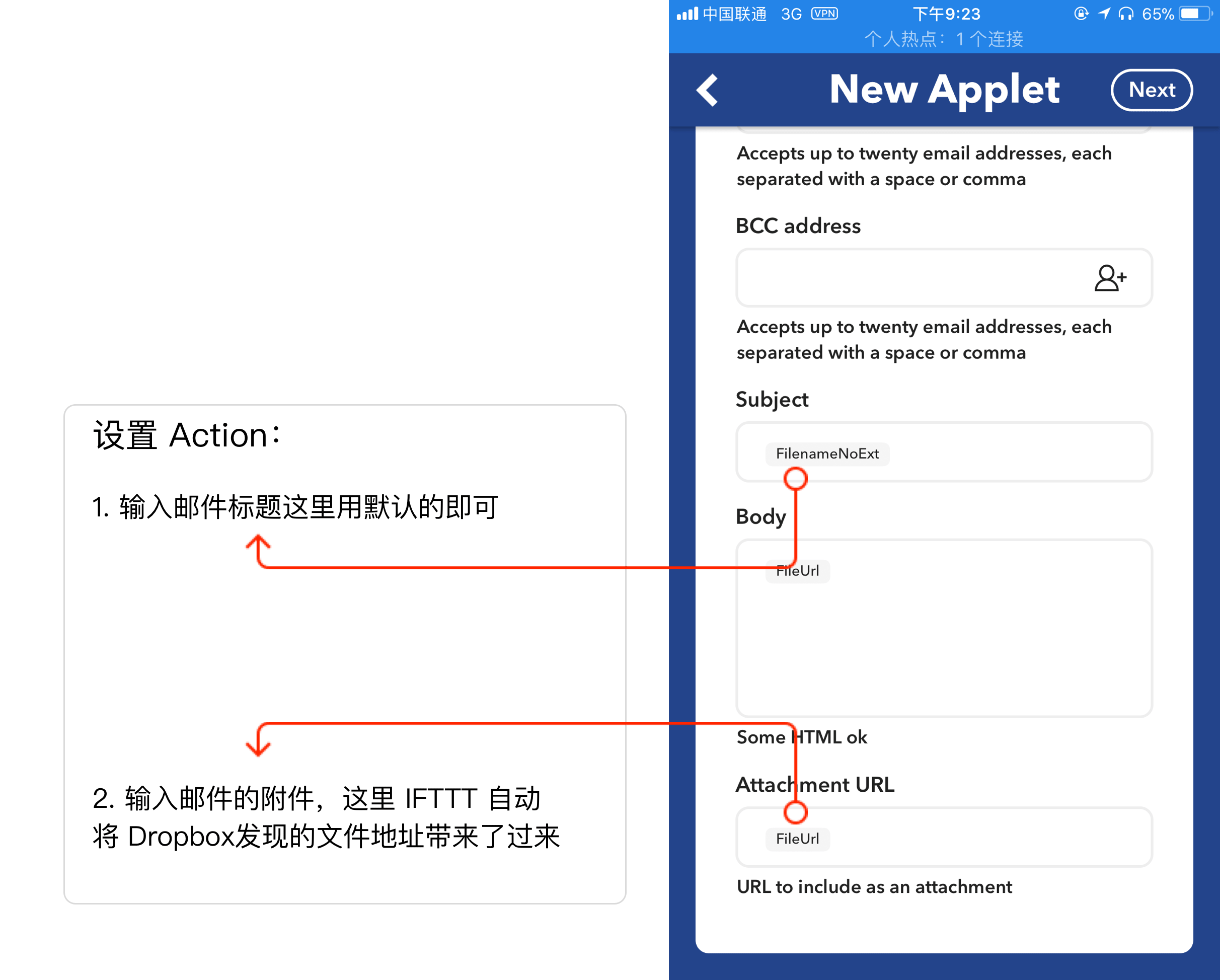 下边我们结合 Dropbox 和 Email 服务提供一个事例供大家参考。