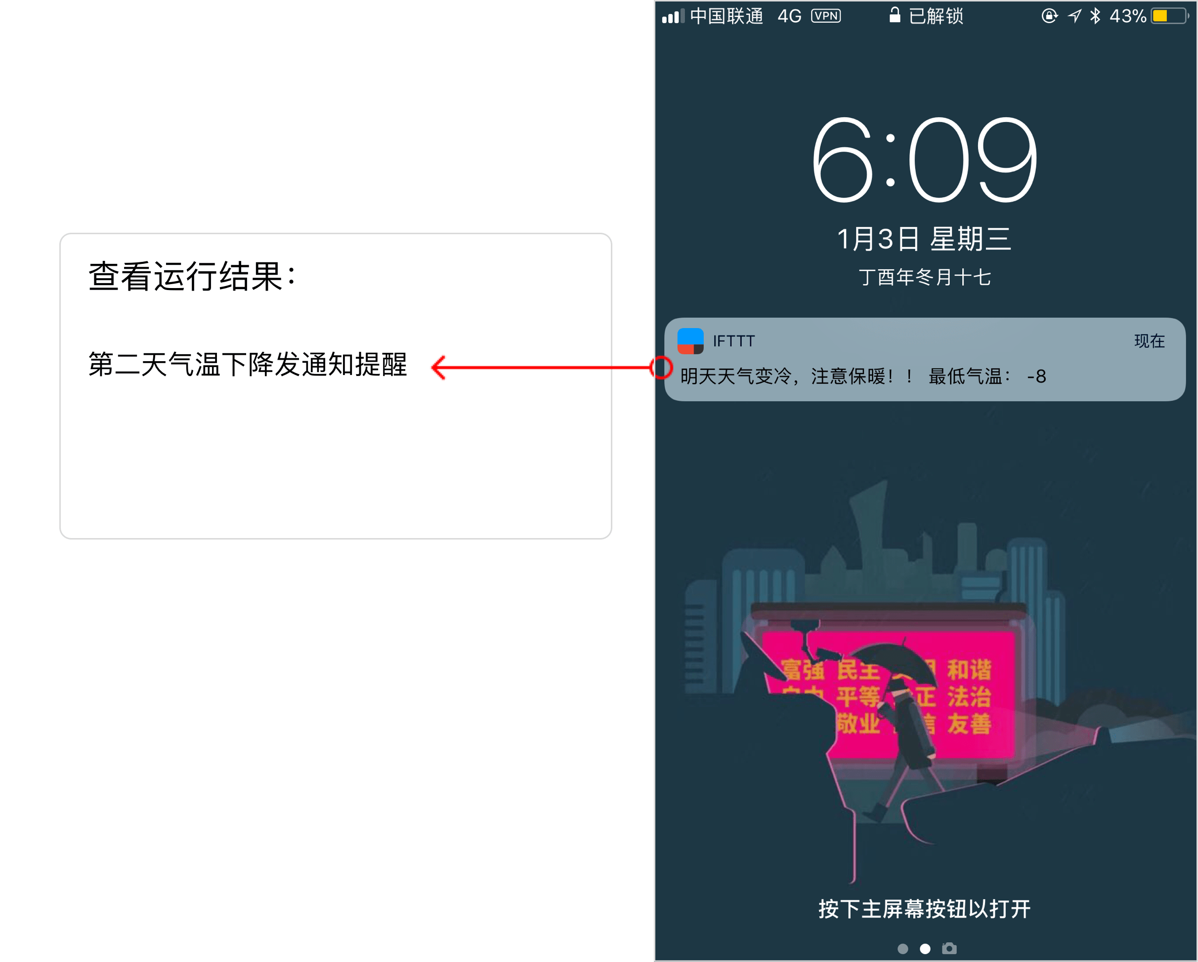 还记得开头我们讲的,对于 IFTTT 提醒的「无痕」,对于降温提醒通知,我们只需要看一眼知道就可以了,不需要进行后续操作,非常轻量级的提醒服务。接下来我们再通过一个例子了解「通知服务」。