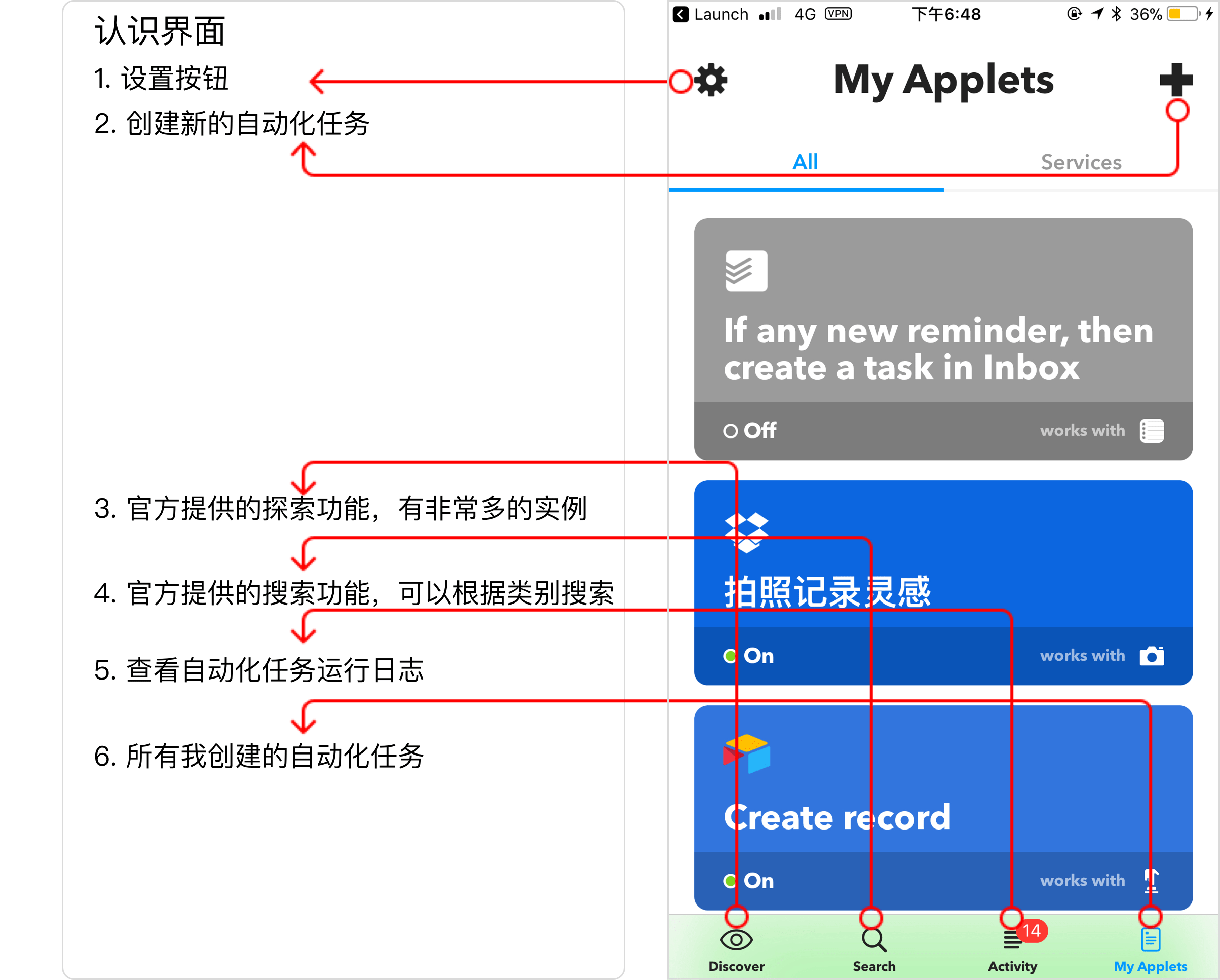 我们先来认识一下 IFTTT 的界面(iOS 客户端为例):