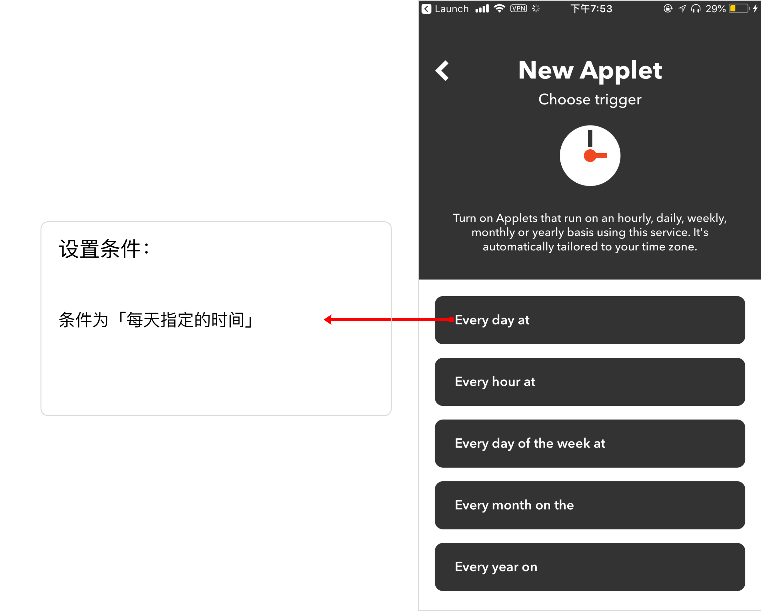 在 iOS 系统中通常我们只能被动接受通知,现在通过 IFTTT 的「特性」,我们完全可以自己掌控通知,做到想让谁通知谁就通知,完美的解决了问题 1,我们通过事例 1 看一下如何实现。