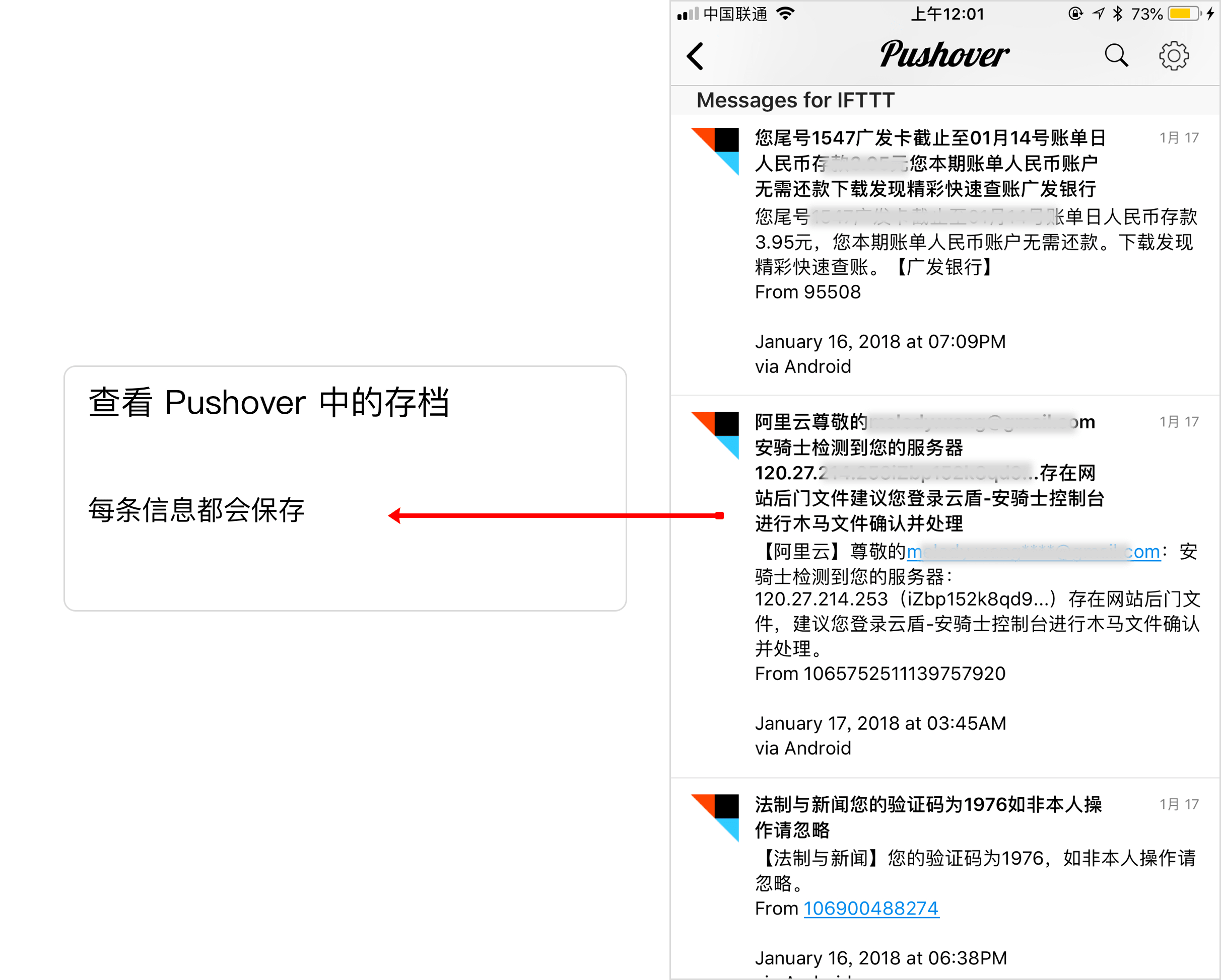要解决这个问题,就需要通知功能具备「存档」功能了,IFTTT 和 Pushover 中只有 Pushover 支持「存档」功能,而且支持「无限条数」的存档。