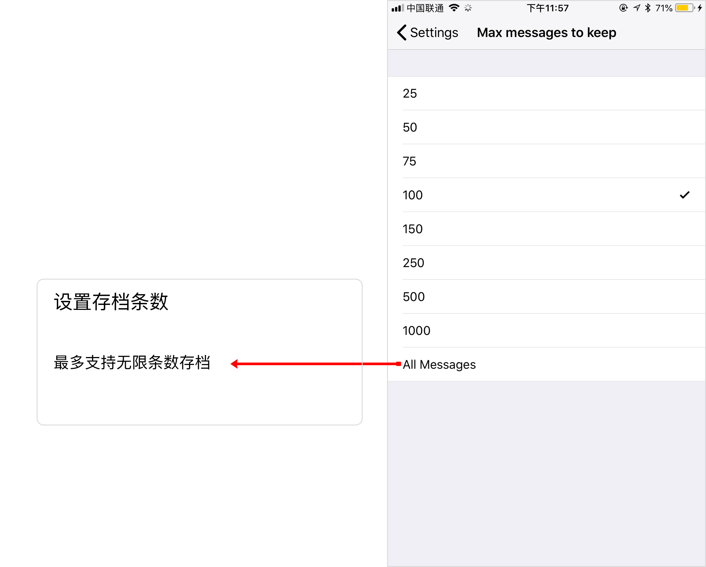 Pushover 有一项「特性」非常厉害,那就是可以存档接收到的通知,而且支持设置存储数量,从而使我们不再漏掉重要通知。接下来我们通过事例 5 看一下他是如何解决问题 4 的。