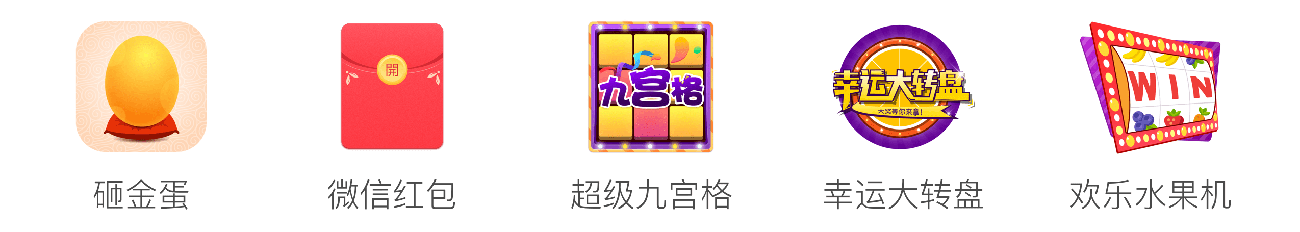 金数据的应用当中,提供了一系列丰富的活动支持,如砸金蛋、微信红包、超级九宫格、幸运大转盘、欢乐水果机等游戏,基本上涵盖了所有主流常见的激励活动。