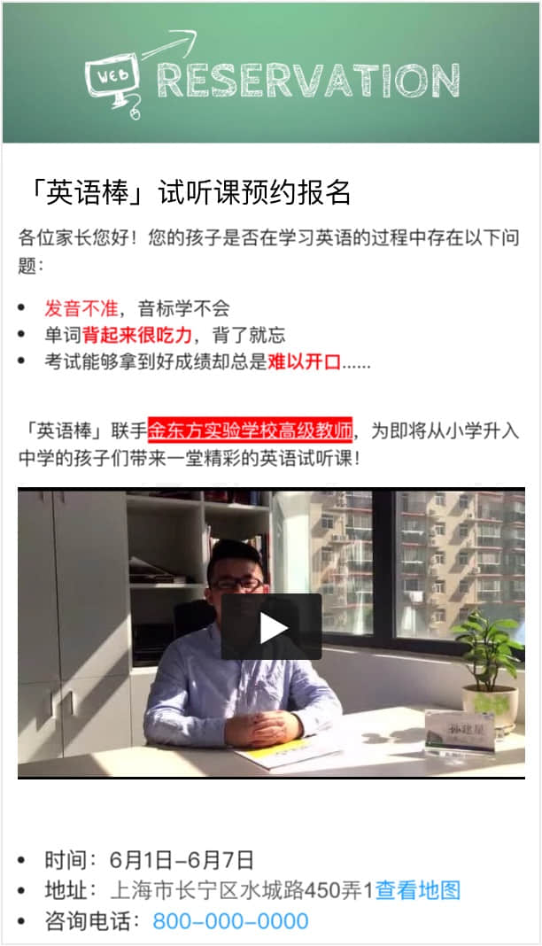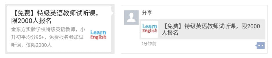 优化过后,在微信中看到这份试听课报名表时,展示的效果是这样的,再回过去跟默认的效果对比一下,现在这样是不是让人更有打开的欲望了?