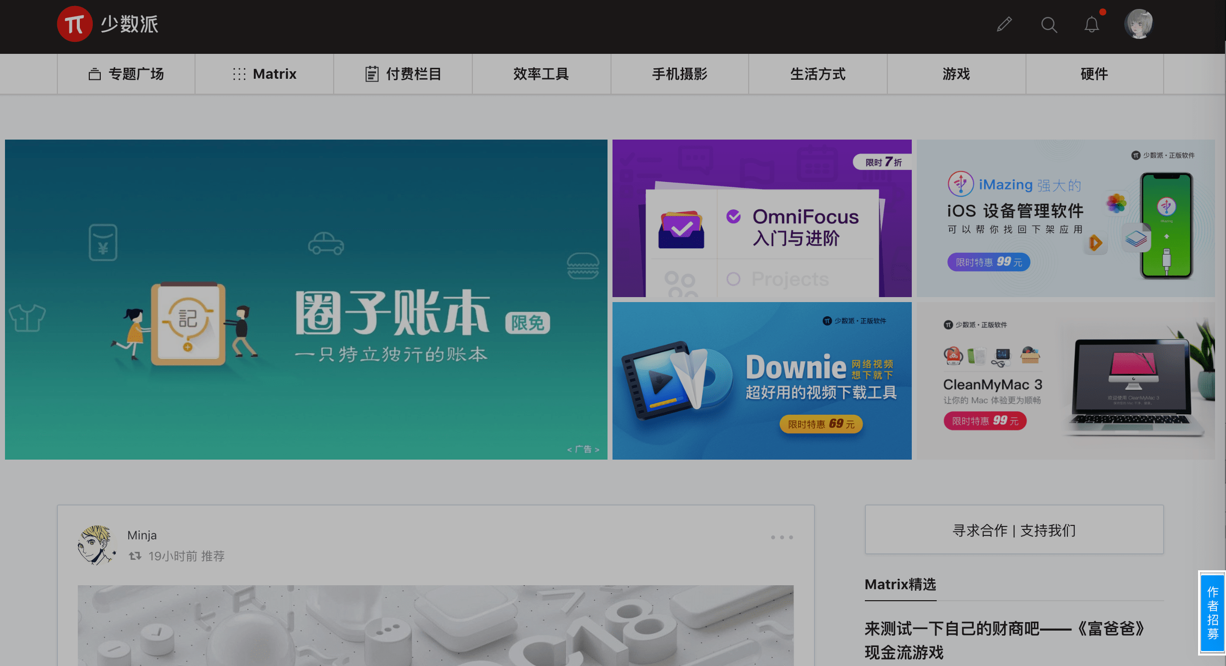 如果少数派近期开启新一轮的作者招募计划,想在网页上醒目地展示出来,有没有什么办法?当然,我们可以借助设计师的力量,在网页上增加一个新的招募 Banner 或区域,但金数据提供了一个更简单的办法:在网页上悬浮显示作者招募表单的入口。