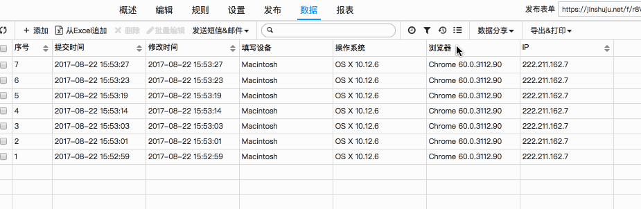 这是通过给表单链接加参数的方式实现的。你可以自定义参数的名称,如下图中的 weixin,这个参数值会被添加到表单的链接后缀上,打开这个带有后缀链接的表单,填写生成的记录,就会如上图一样,在扩展属性一列中显示 weixin。