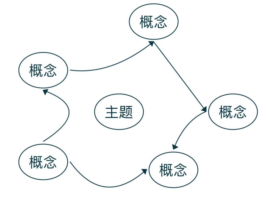 这样就有了第二个特征:主题的主干作为分支从中央图形向四周放射。这个特征里放射是关键点。所以下面这样形式的图也不是思维导图。它虽然有一个中心,但其它结点不是从主题放射出来的。
