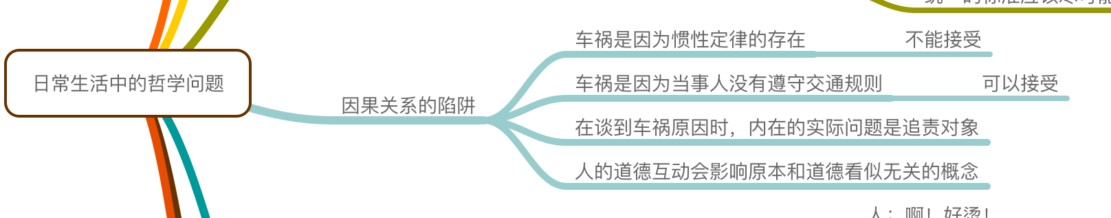 我们来看一个稍微复杂点的例子,下面的这个思维导图片段总结了一篇哲学科普文的内容: