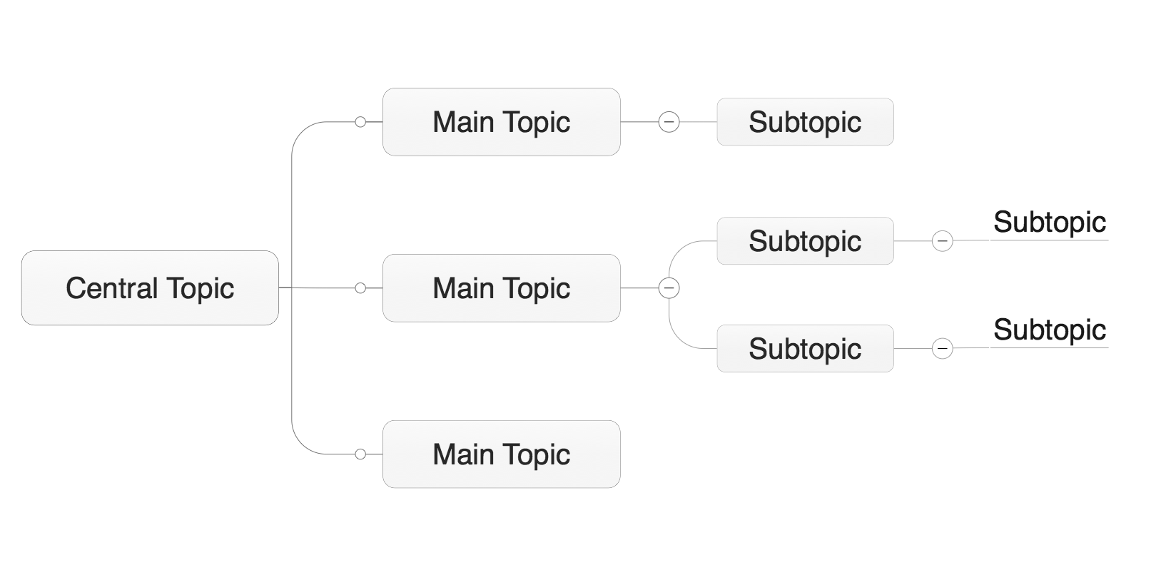 在一些思维导图工具中还使用不同的线框,它们在形状或线条类型上有所区别。假如你要使用这些线框,我建议你给这些线框加上自己能记住的不同含义,这可以像颜色一样给你的思维导图增加一个内容的维度。