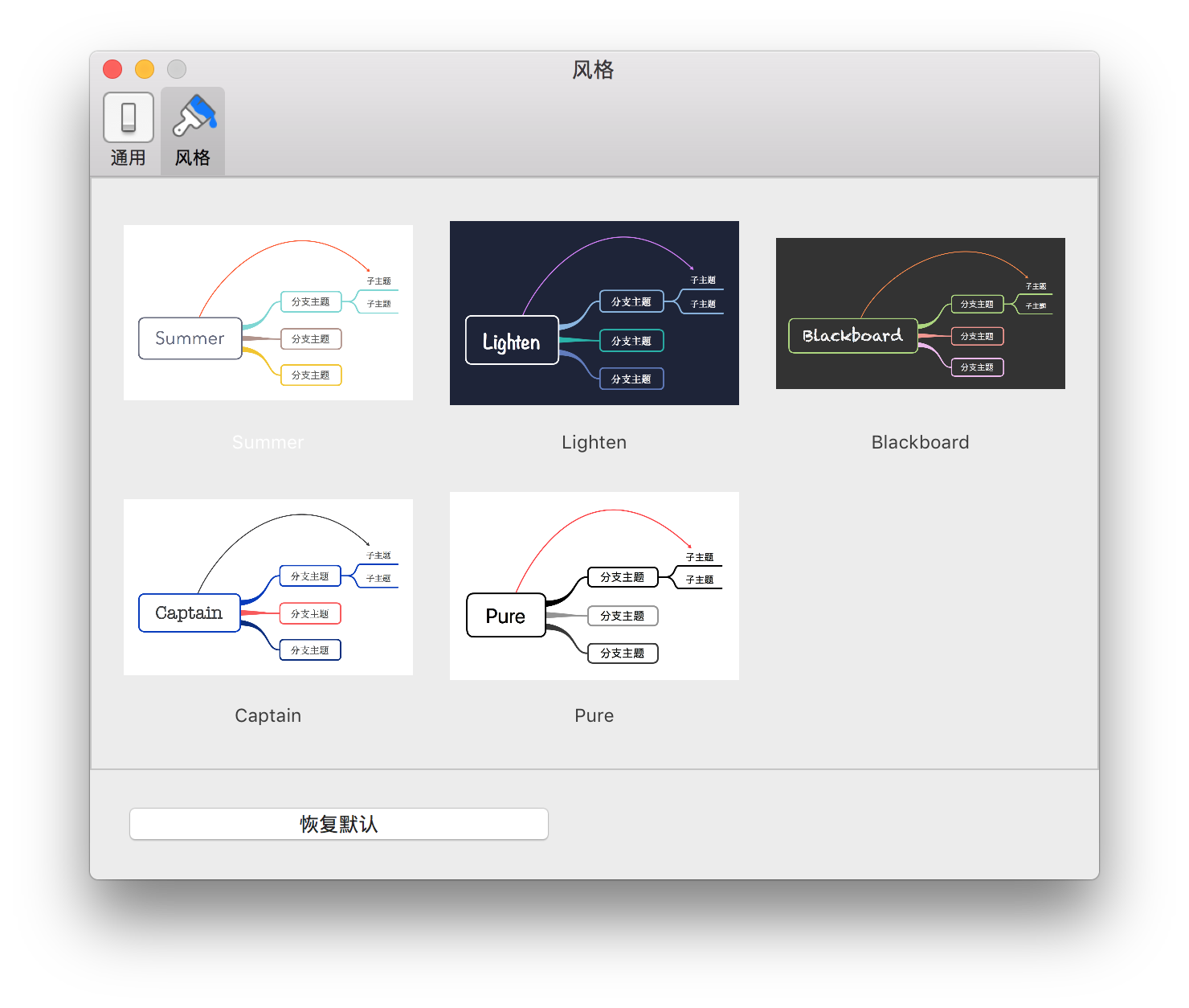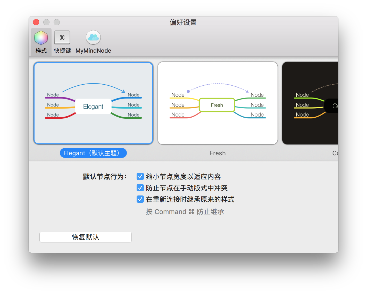 MindNode 是 Mac 上一款非常著名的思维导图软件,也是我在使用的软件。最主要的特点就是配色非常美观的默认模版设计。