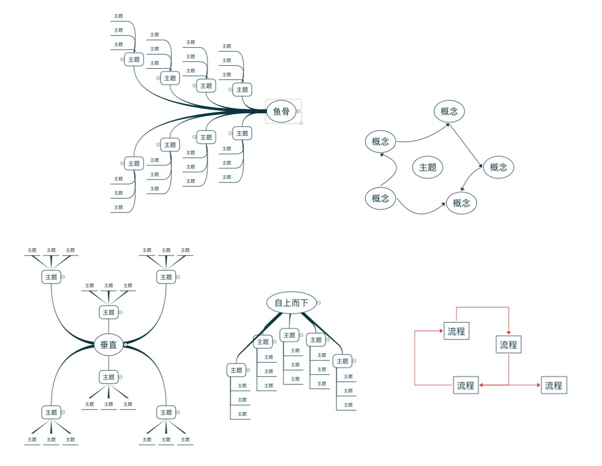 其他形式的图:除了思维导图之外还支持鱼骨图等各种其他类型图案的绘制。