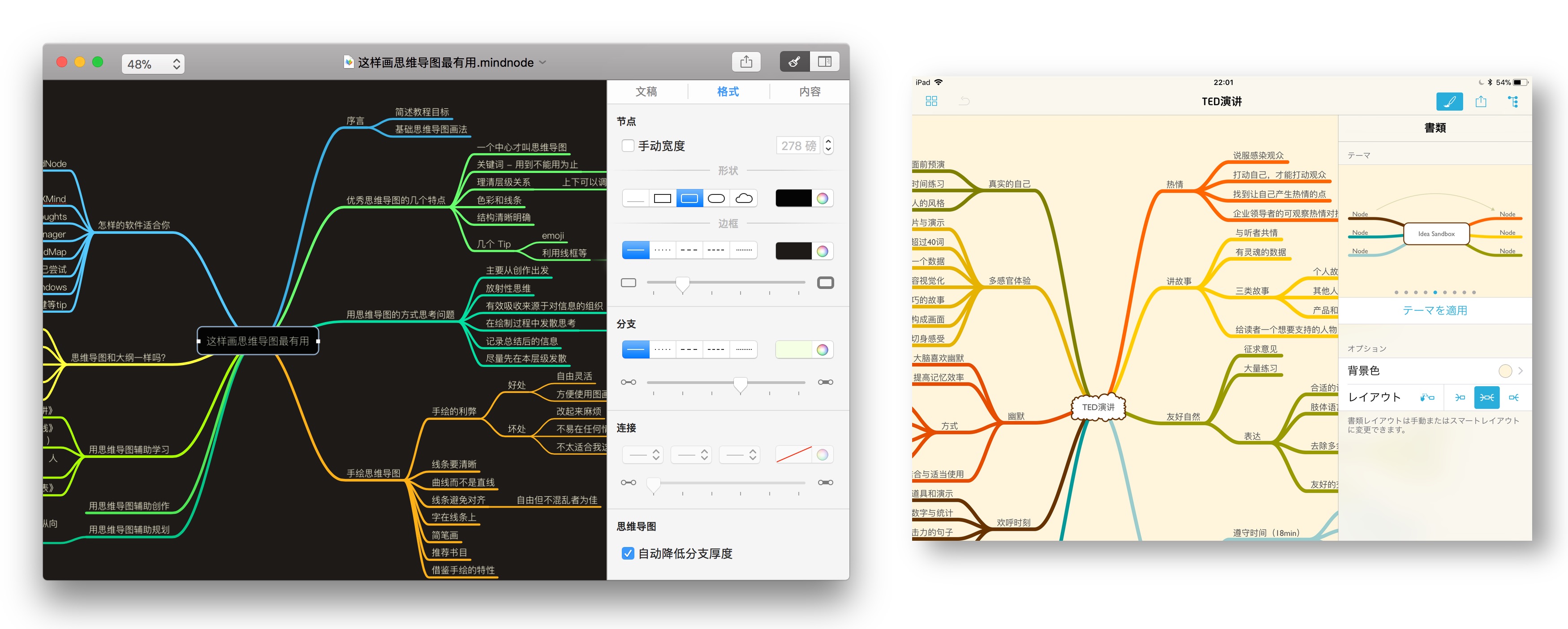 macOS / iOS:对于想要大量使用思维导图的用户选择 MindNode,长得好看,功能完整。对于想要入门思维导图的用户选择 Lighten,好看又便宜。