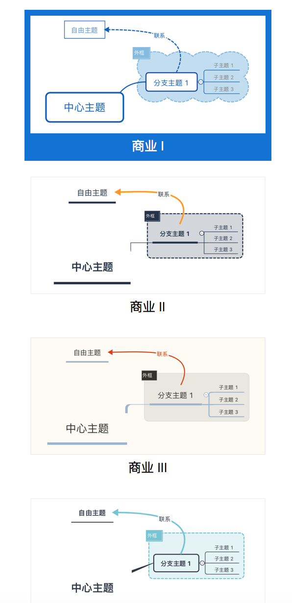 其他形式的图:除了思维导图 Xmind 还支持很多种关系图表的绘制。