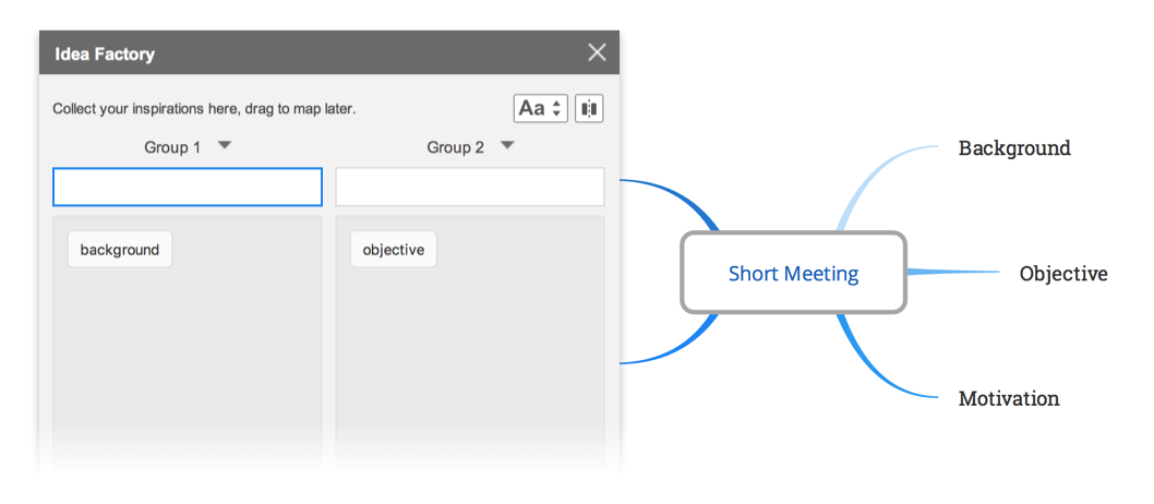 头脑风暴:这是一种在给定主题下收集关键词的模式,收集到的关键词可以直接拖拽到思维导图中。