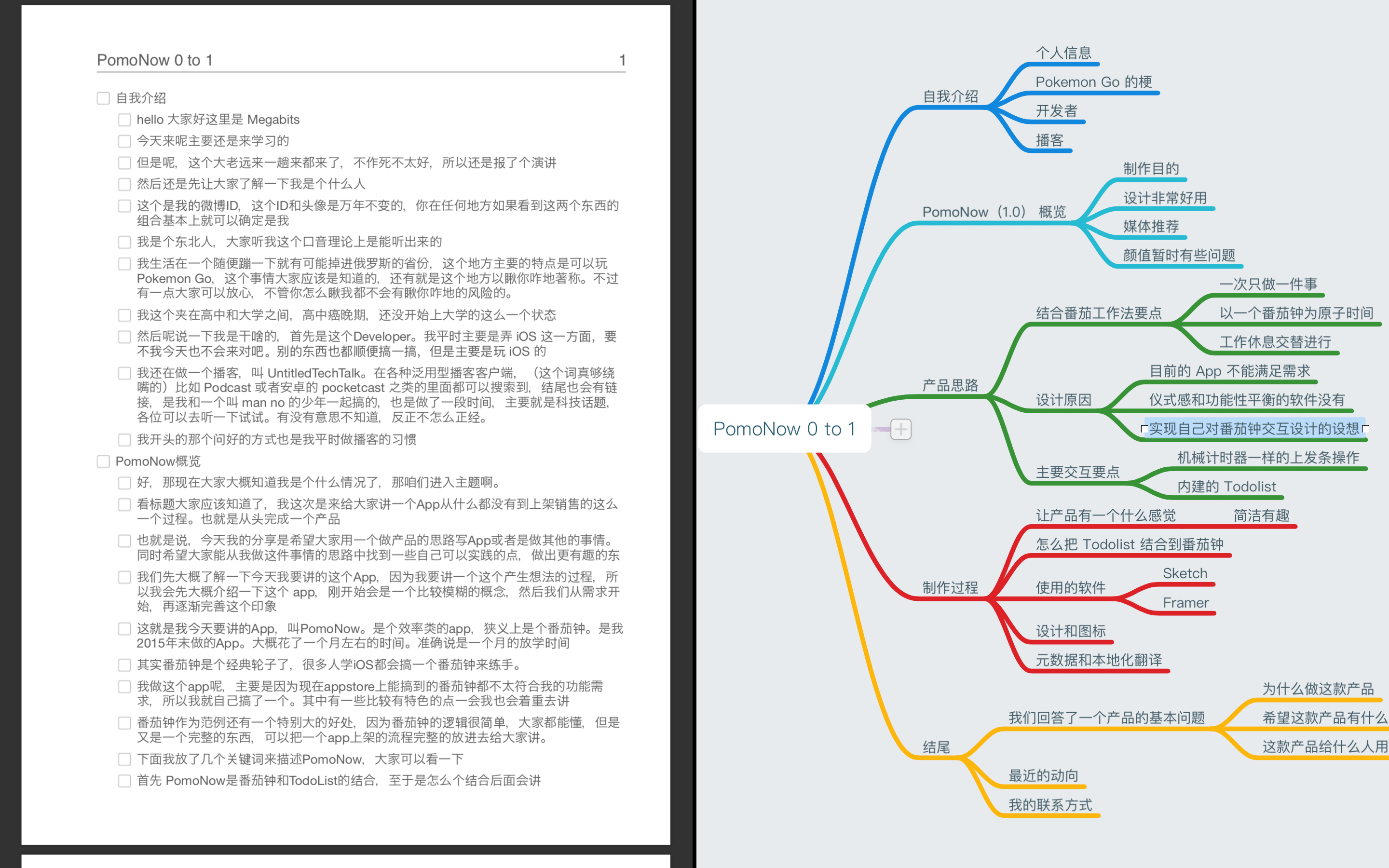 大家可以先看一下我下面这张图片,是关于同一次演讲的逐字稿大纲和其思维导图。