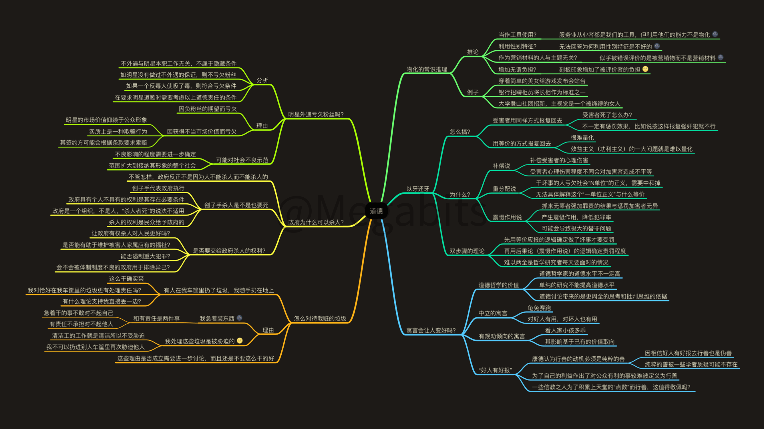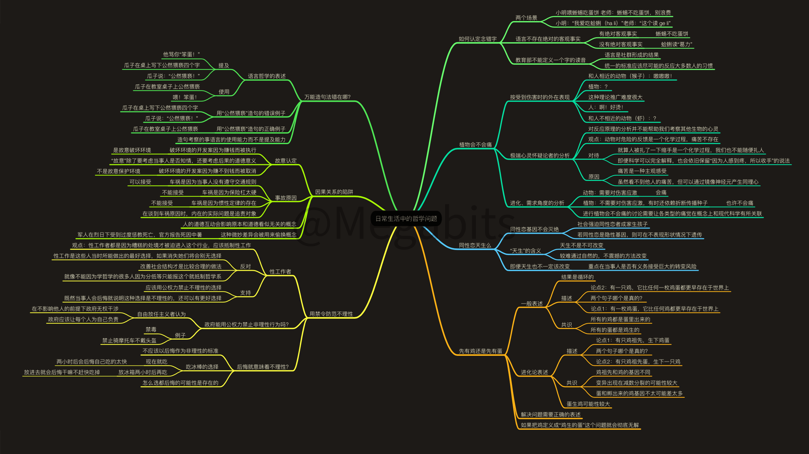 最近我刚刚读完了台湾哲学科普作者朱家安的《哲学哲学鸡蛋糕》,个人很喜欢这本书。这期番外就是我给这本书画的思维导图笔记。 这本书用简单易懂,贴近生活的方式讨论了很多经典的哲学命题。书里没有难懂的名词和枯燥的论证,而是用我们生活中社会中的例子去思考哲学,让你知道哲学并没有那么难。