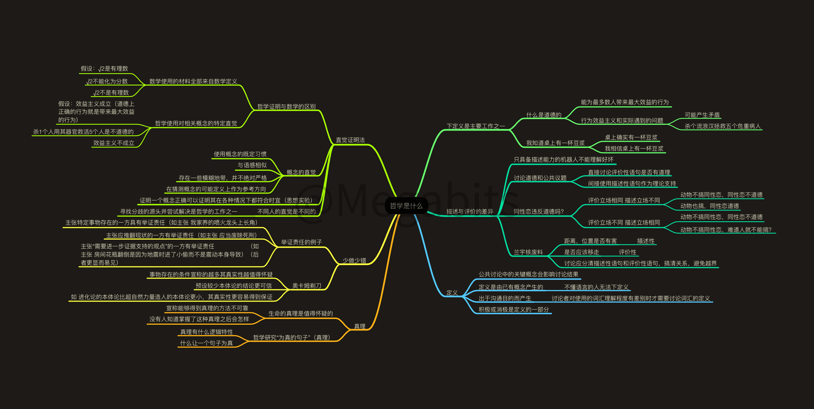 因为哲学论证的语言严密性,关键词并不能做太多的精简,所以在做思维导图的时候我确实是遇到了一些困难,下面就给大家看看我给这本书做的笔记。我还给大家准备了思维导图的源文件,欢迎下载: