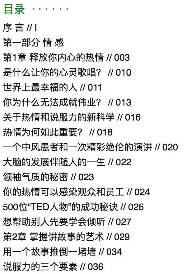 如果阅读过这本书,你会发现我的思维导图中使用的标题也好主干也好,和书本身的标题也好目录也好差别很大。我们来看一下这本书的目录。