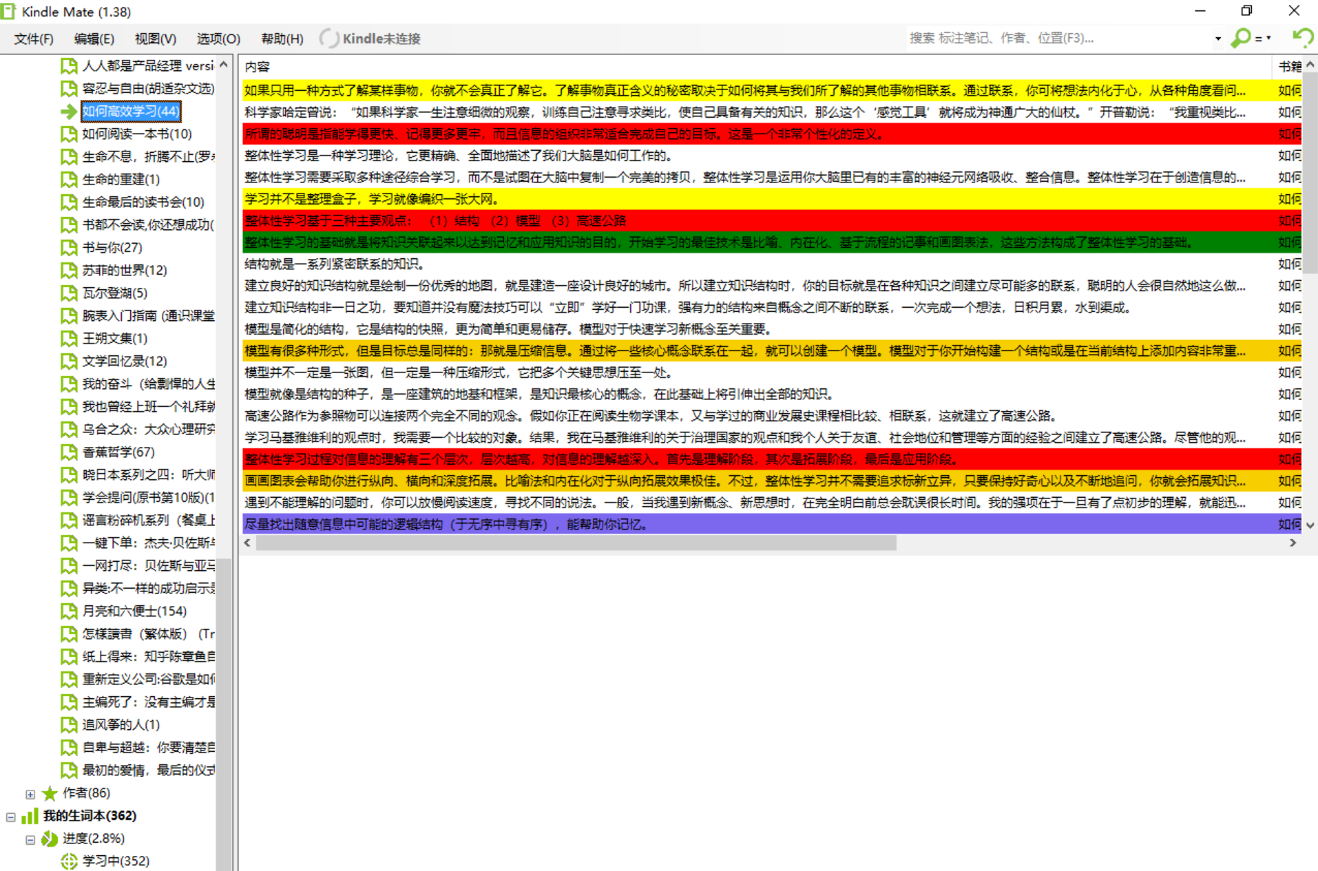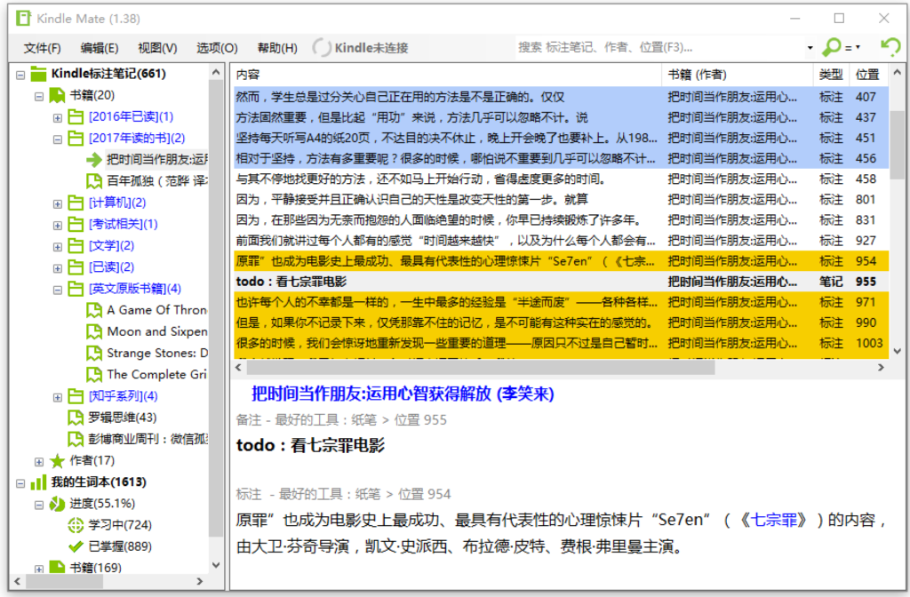 Kindle Mate 是一款国内老牌的 Kindle 标注管理软件,对所有用户免费开放使用,因而也拥有了很大的用户群体。当然如果它只能管理标注,肯定也不足以支撑它的口碑,事实上,它的语言学习功能也十分强大,其对生词本的多元支持,目前还是没有什么产品能够与之比肩的。