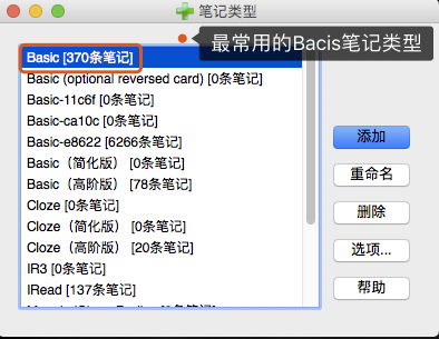 Anki 主要是由牌组、卡片和笔记类型组成,通俗来说分别对应:文件夹、需要记忆的信息以及 Q&A(Basic)。其中,最常用的笔记类型就是 Basic 了,它也是我们今天要用到的类型。