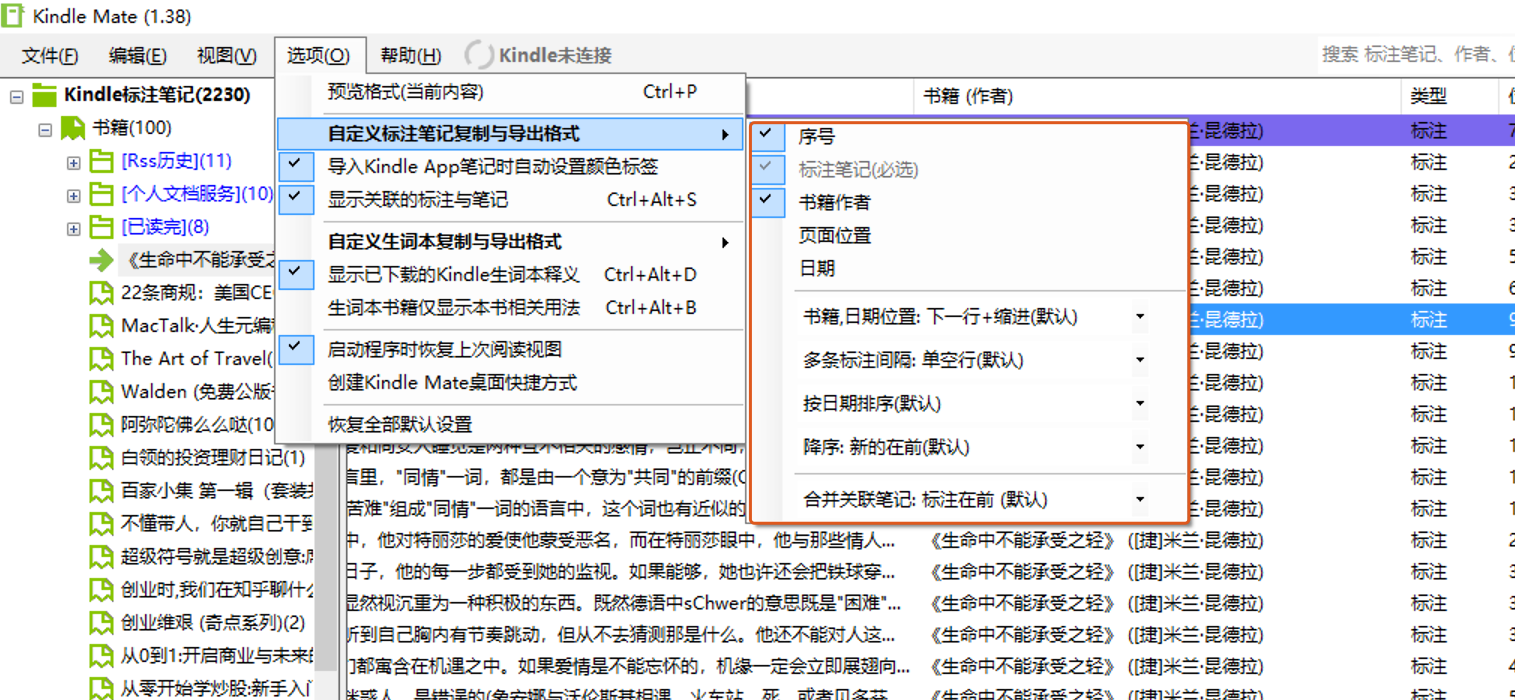 问题:我发现导入标注到 Kindle Mate 后,标注的顺序有些是错的,不是按照 Kindle 里面文章的标注顺序。例如:在 Kindle 文章里,假设标注 a 在前,标注 b 在后。同步到 Kindle Mate 后,会出现标注 b 在 a 的前面,请问如何解决这个问题? @xXL